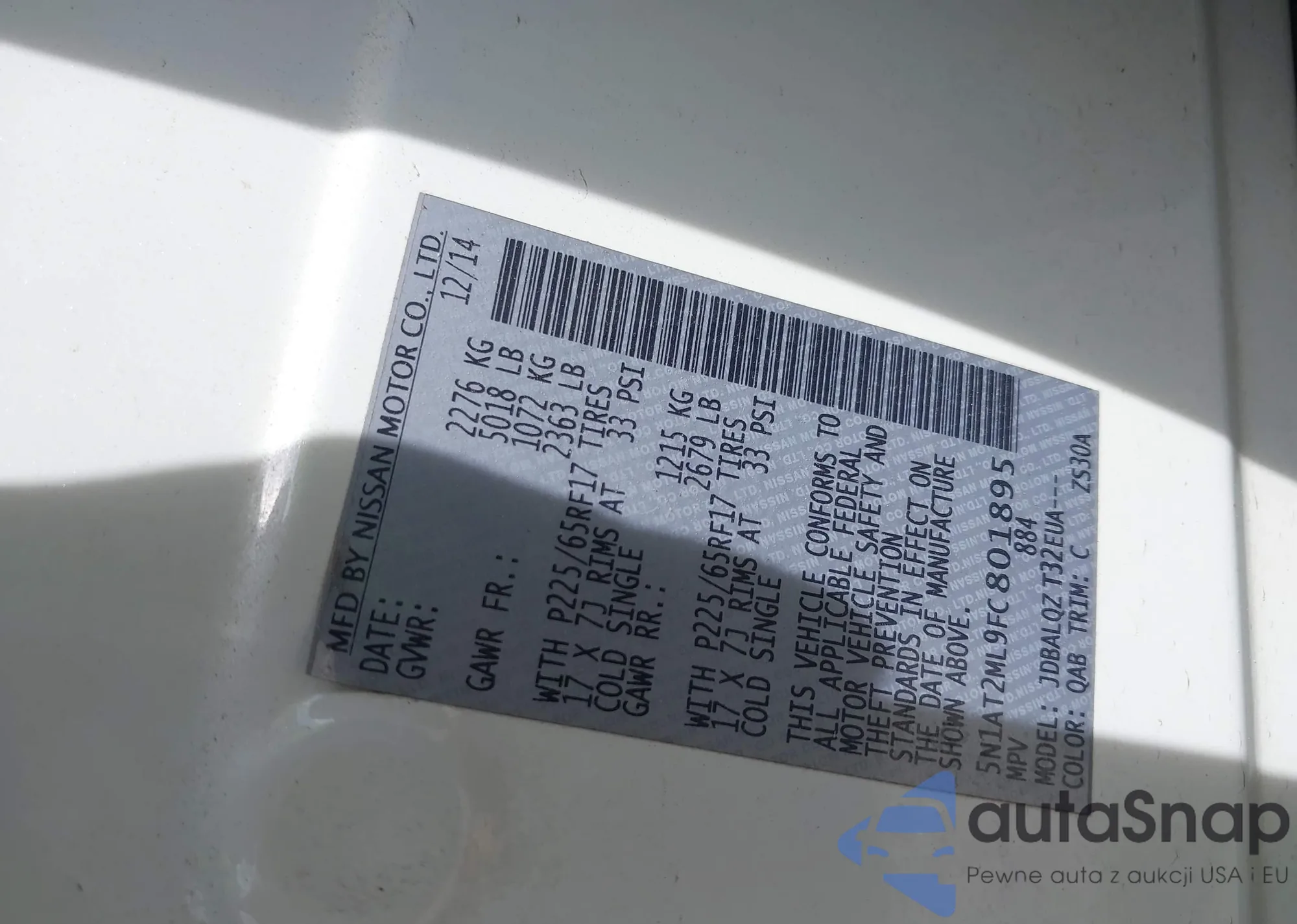 LOT: 42183138 VIN: 5N1AT2ML9FC801895