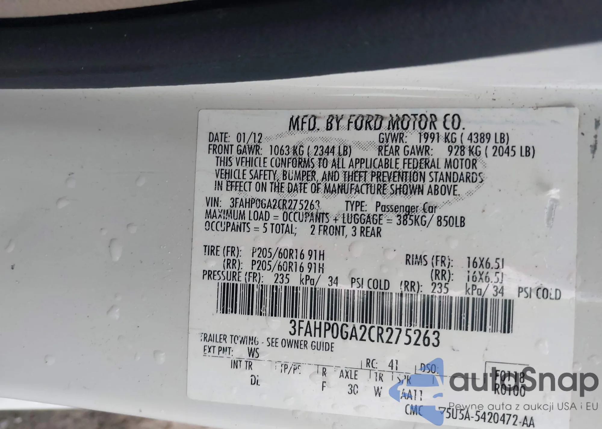 • VIN 1N6AF0LY1LN801075