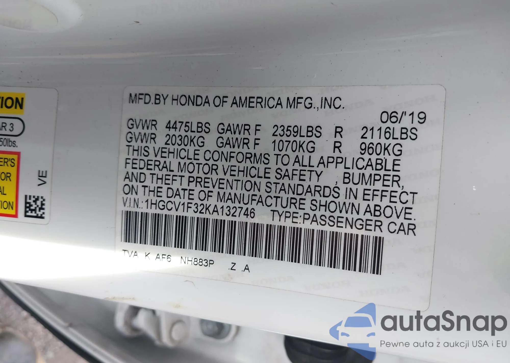 LOT: 42330557 VIN: 5J6YH28766L015788