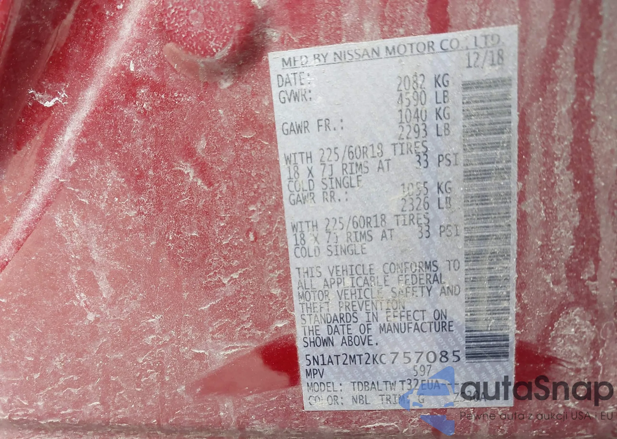 LOT: 41955536 VIN: WP1AA2A23JKA06540