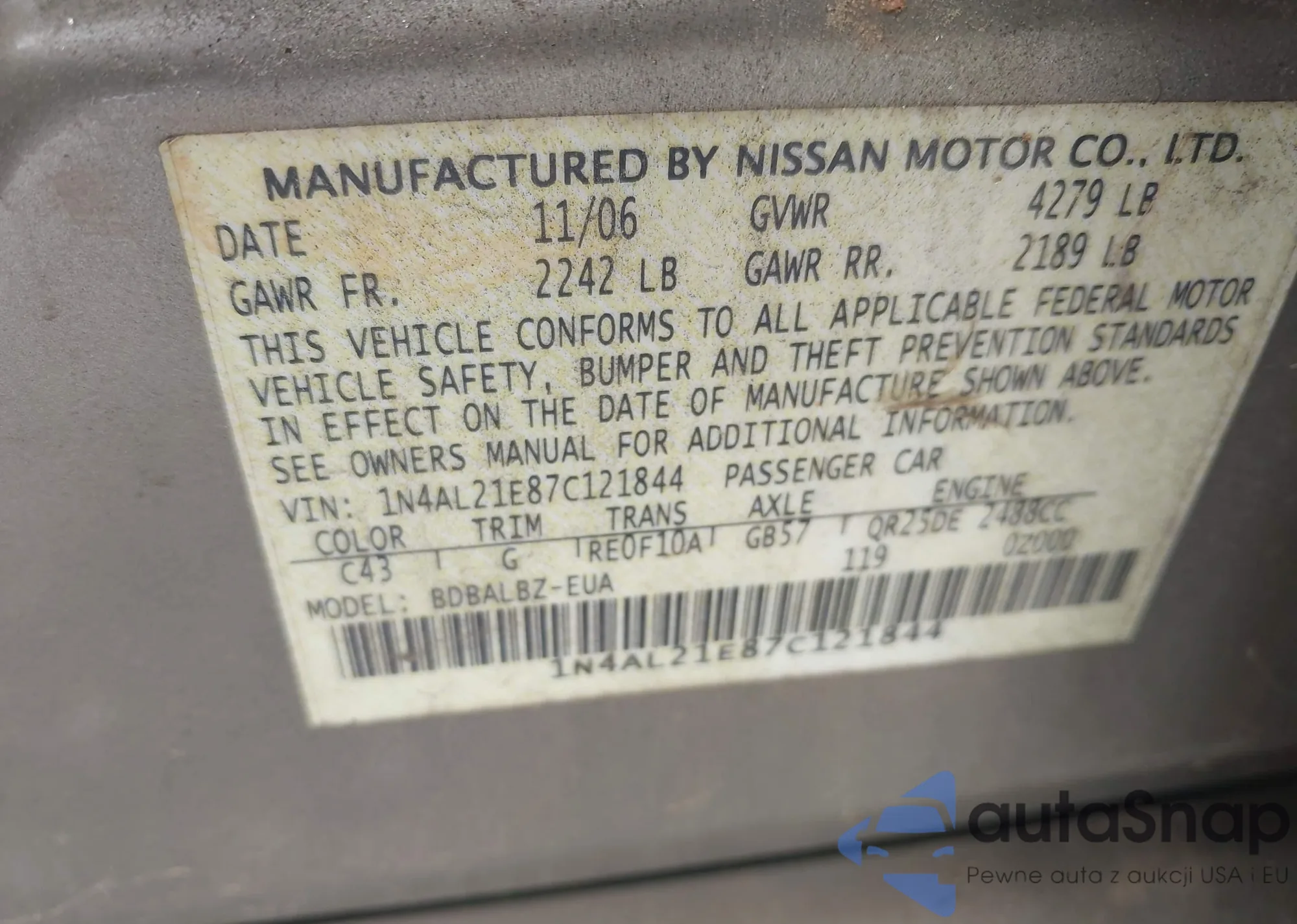 LOT: 42007319 VIN: JN8AZ18U09W015863