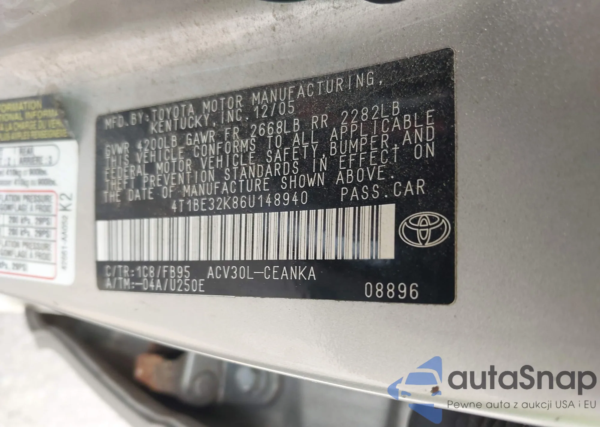 • VIN 2T1CF22P8YC274405