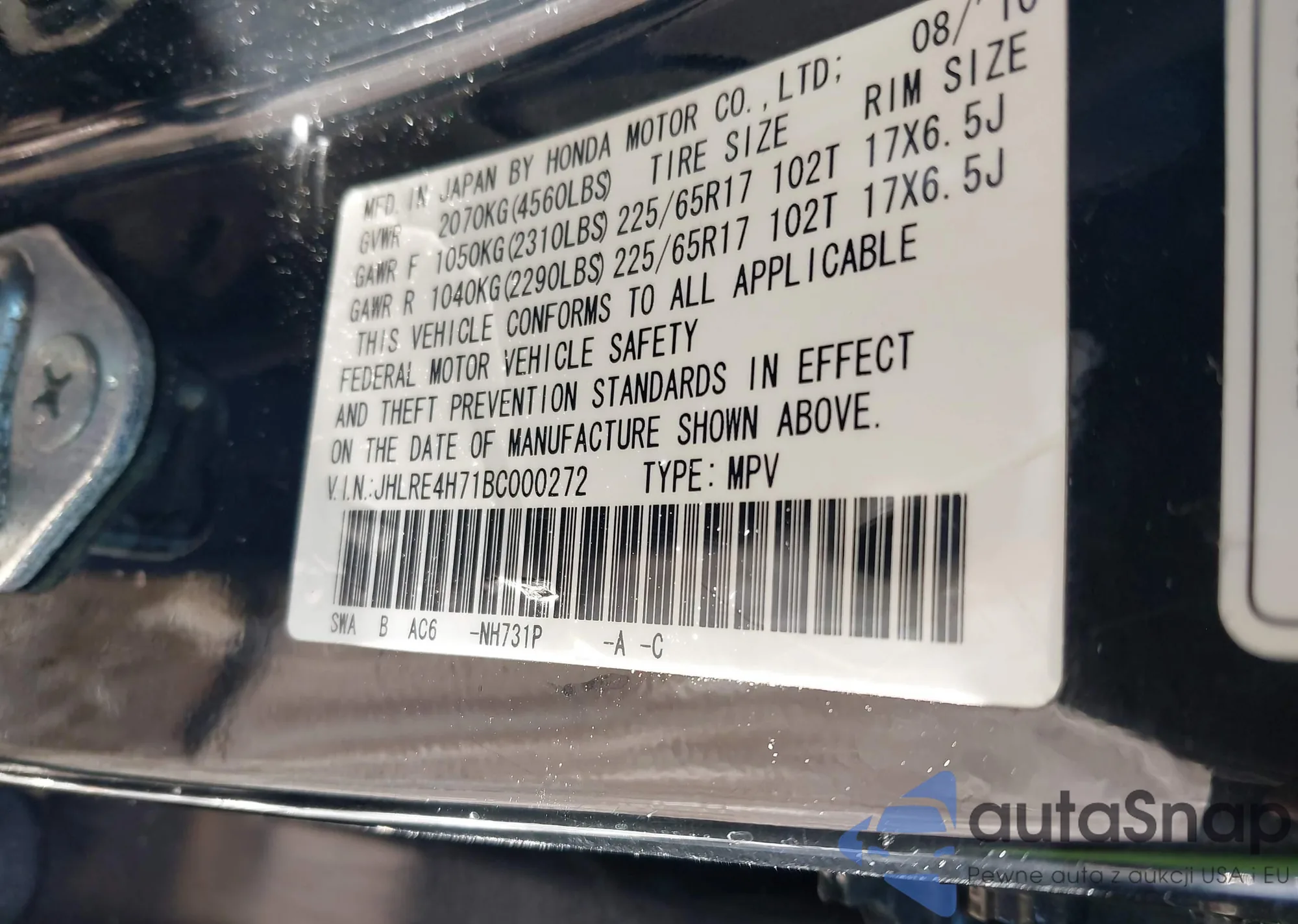 • VIN JHLRE4H71BC000272