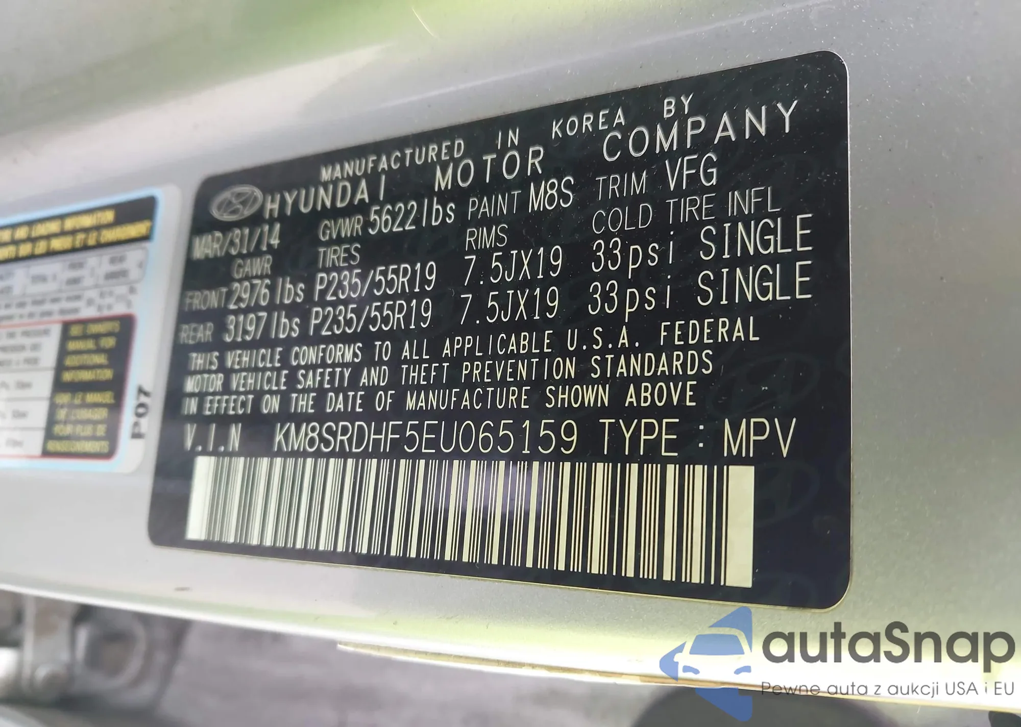 • VIN KM8SRDHF5EU065159