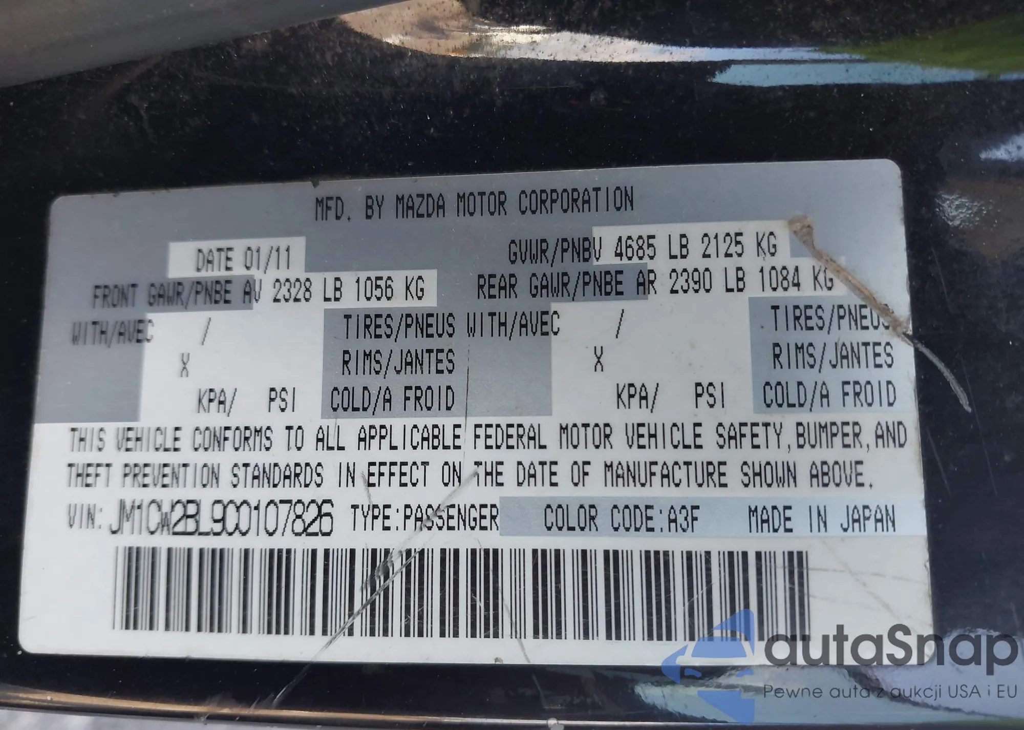 LOT: 42297368 VIN: JM1CW2BL9C0107826