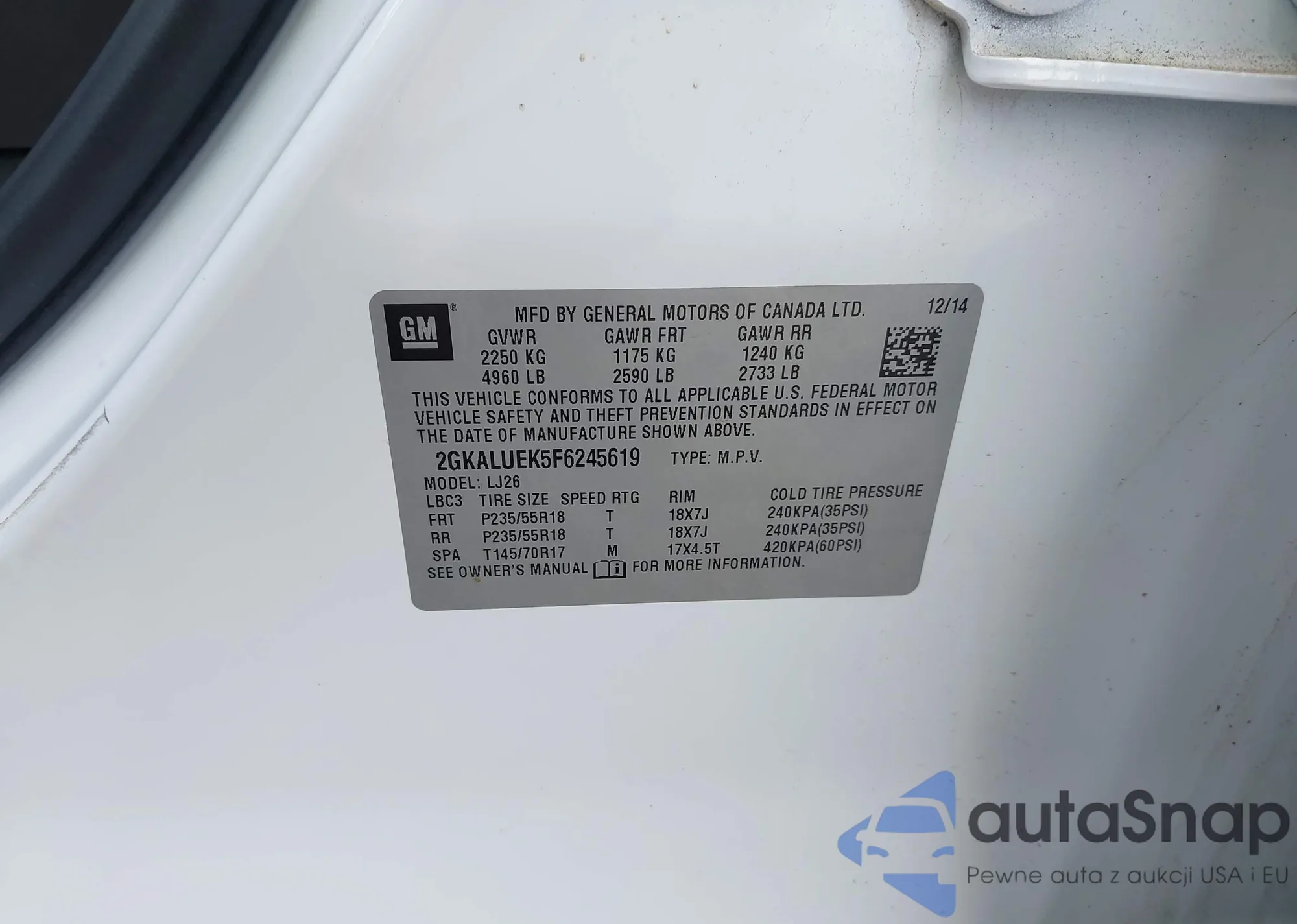 • VIN 2GKALUEK5F6245619