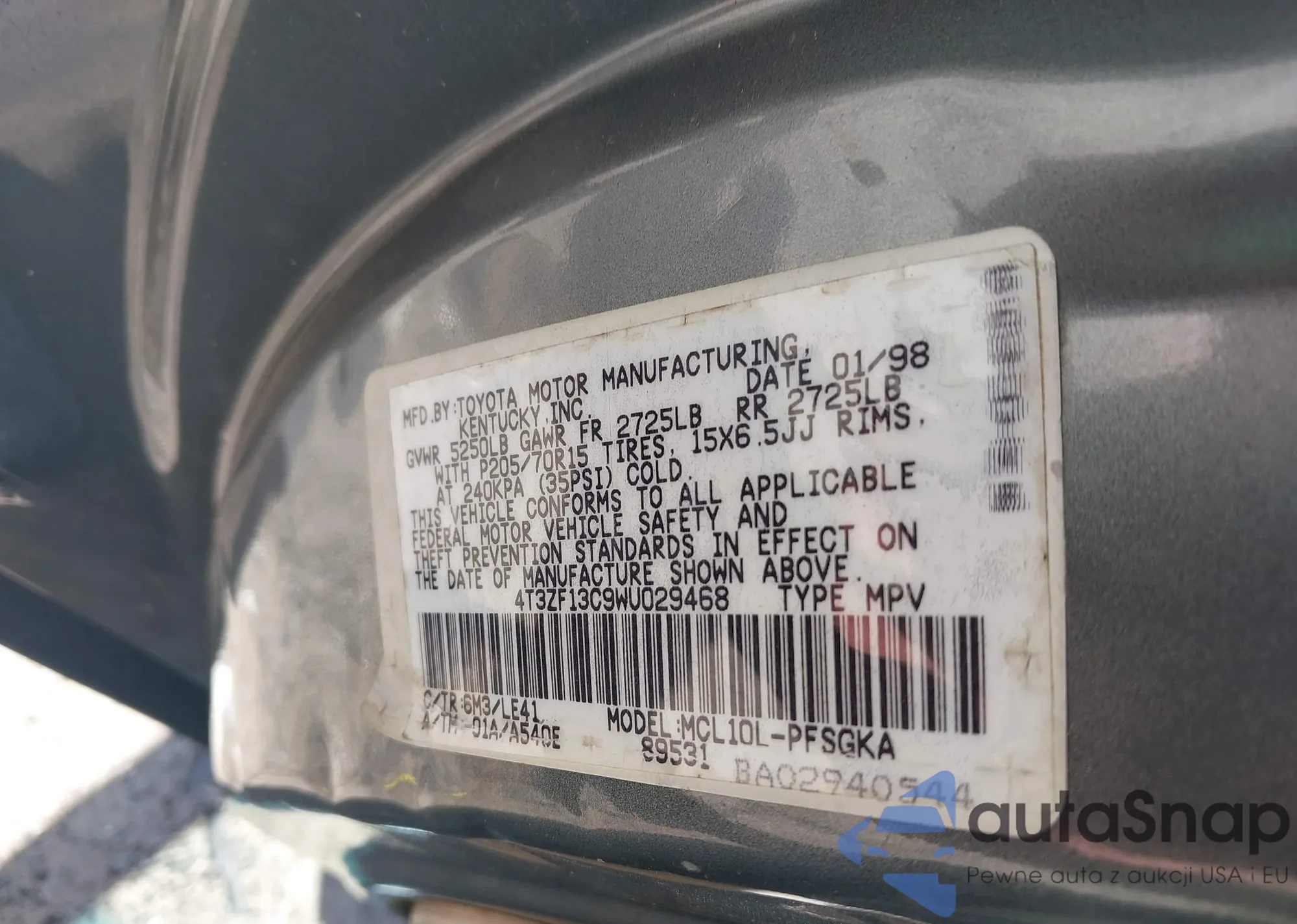 LOT: 42199057 VIN: 4T3ZF13C9WU029468