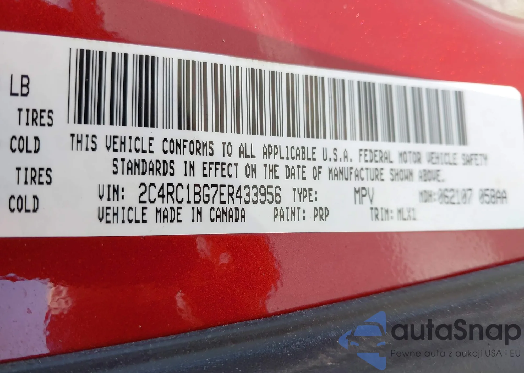 • VIN 2C4RC1BG7ER433956