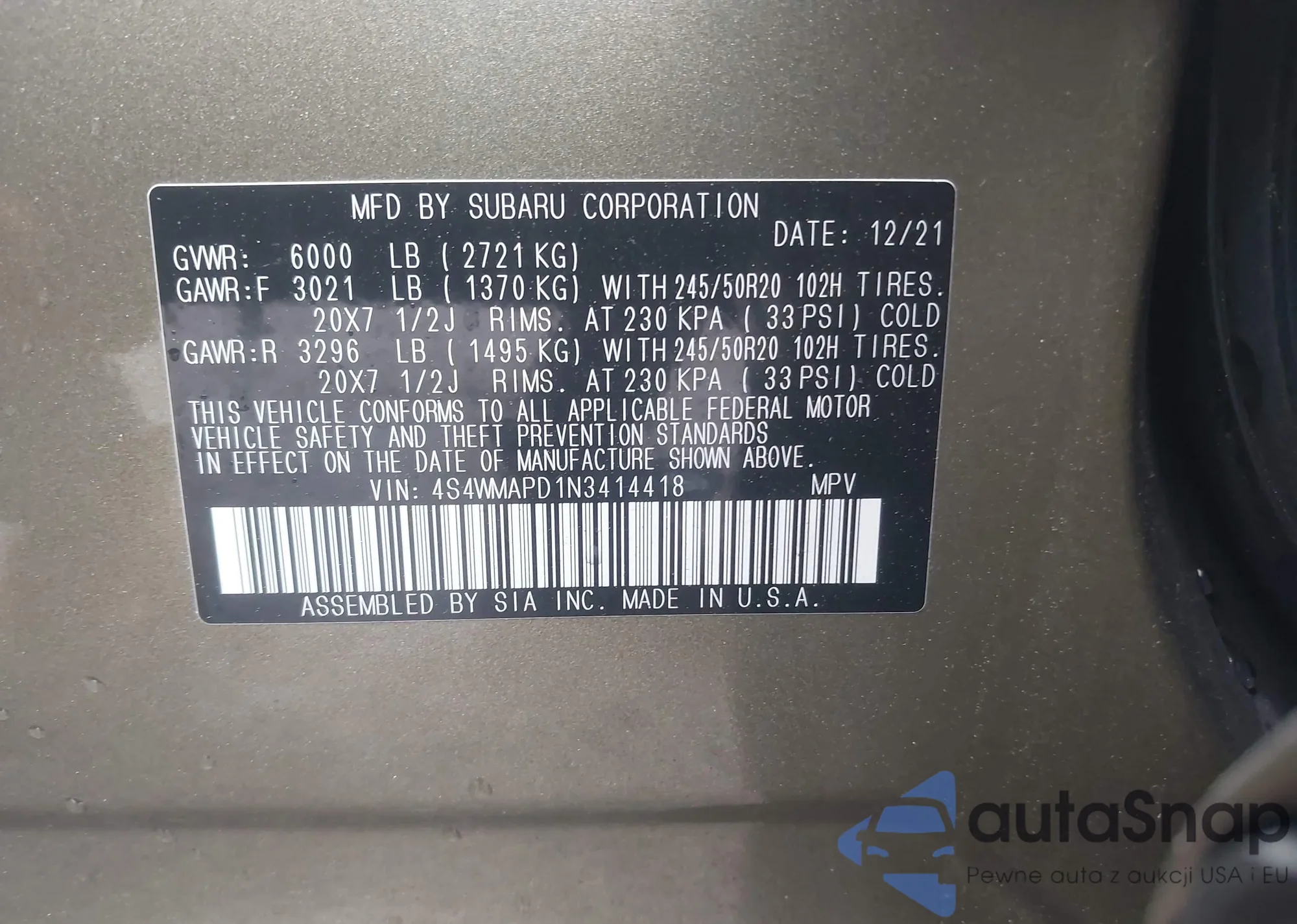 LOT: 42237761 VIN: 4S4WMAPD1N3414418
