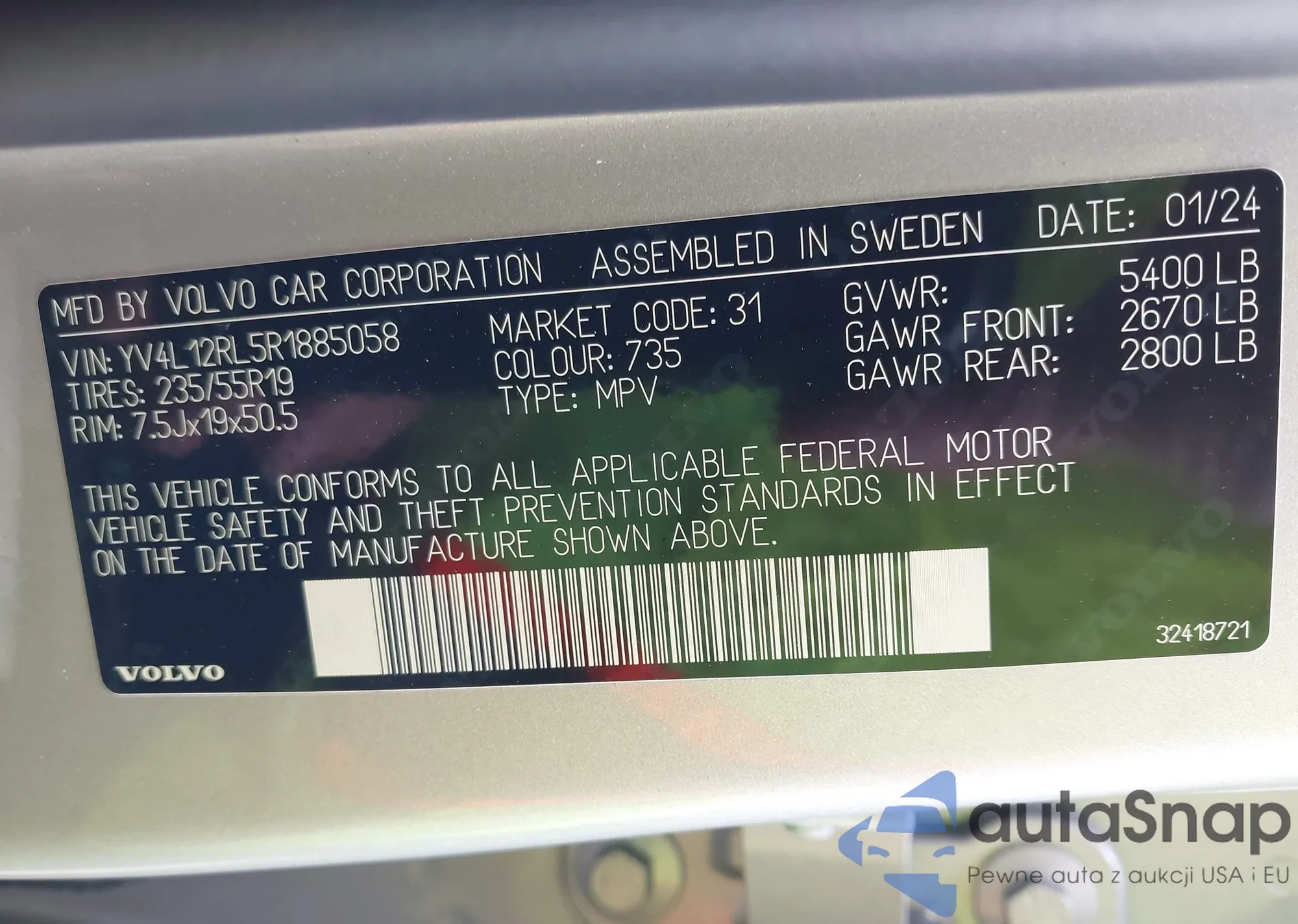 LOT: 42051019 VIN: SHSRD78835U333549