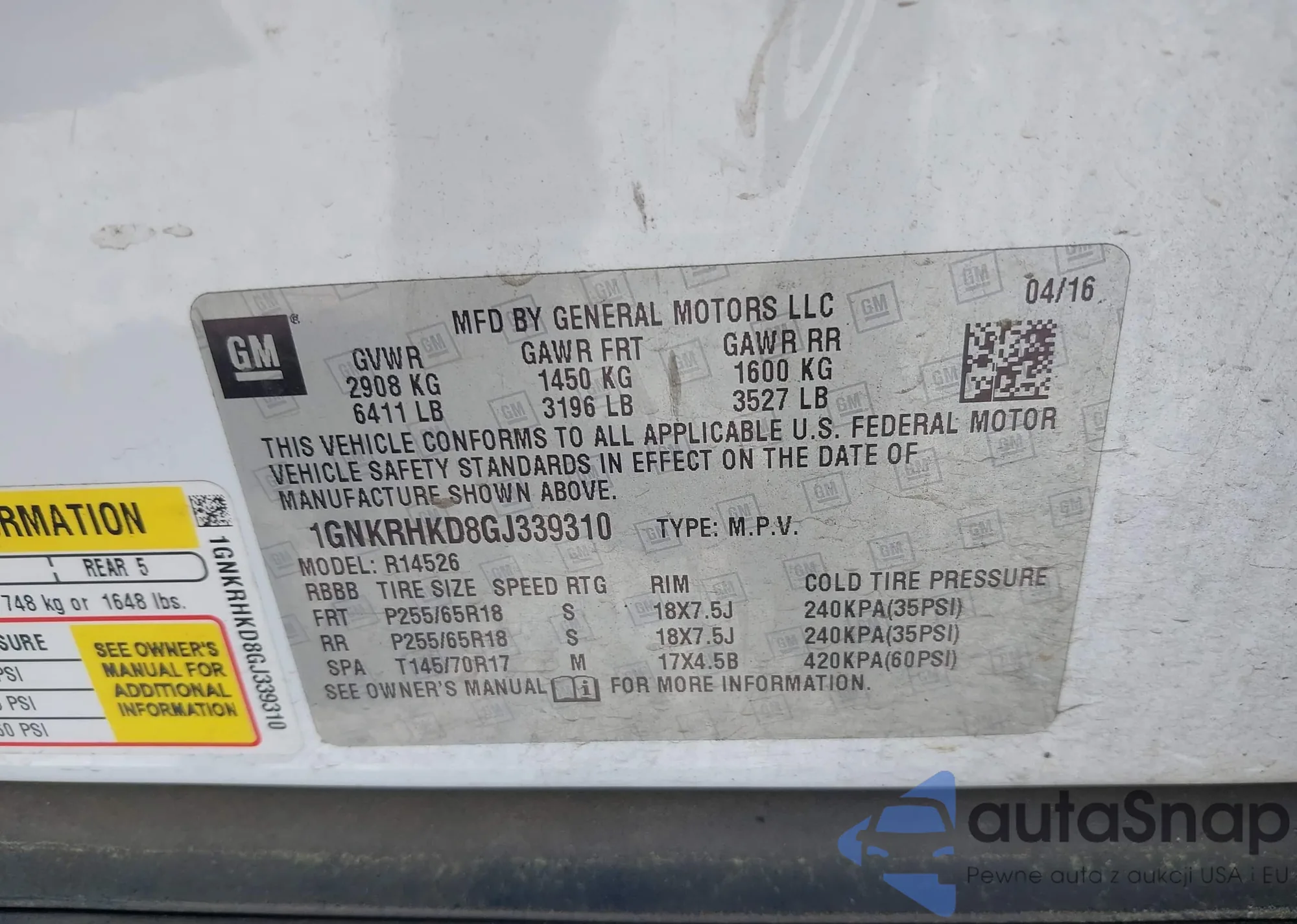 LOT: 41851163 VIN: 1GNKRHKD8GJ339310