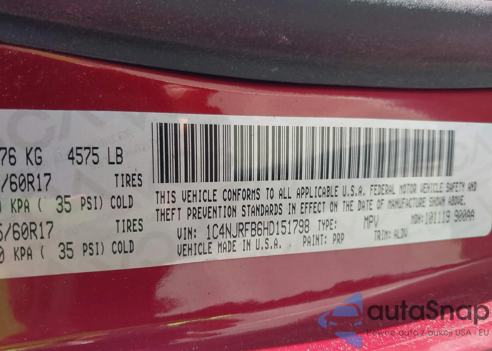 LOT: 42333550 VIN: JA32V2FW6HU001870