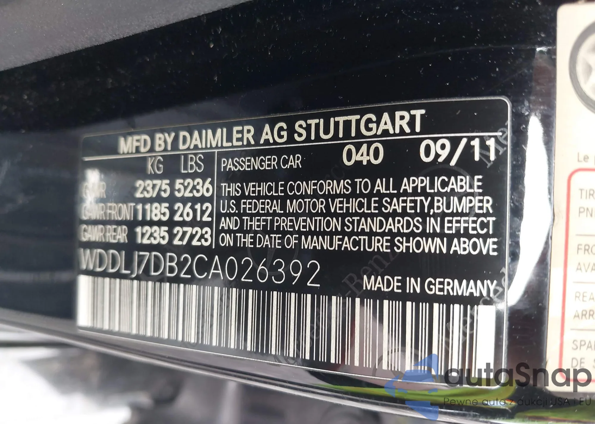 • VIN WDDLJ7DB2CA026392