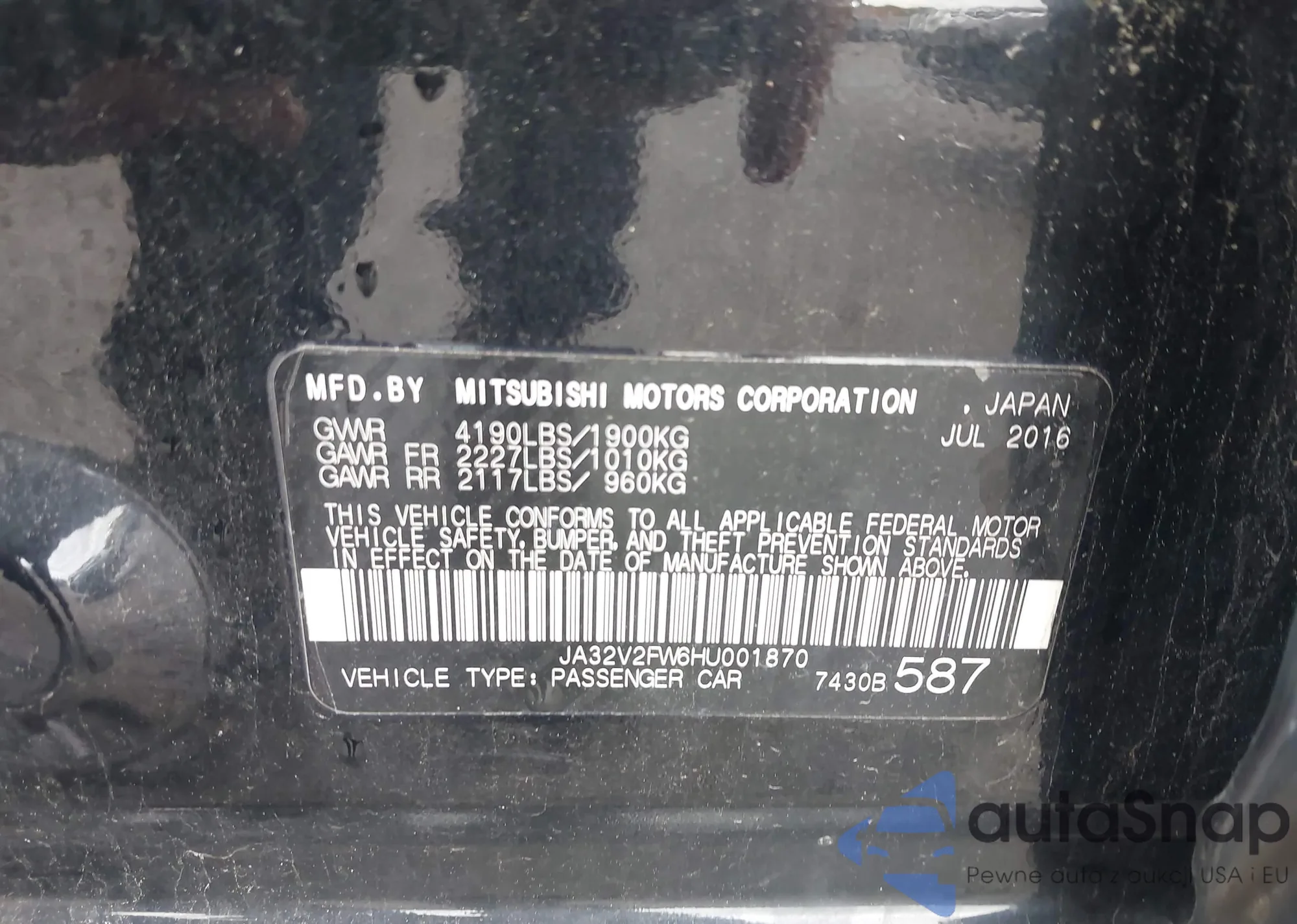 • VIN JA32V2FW6HU001870