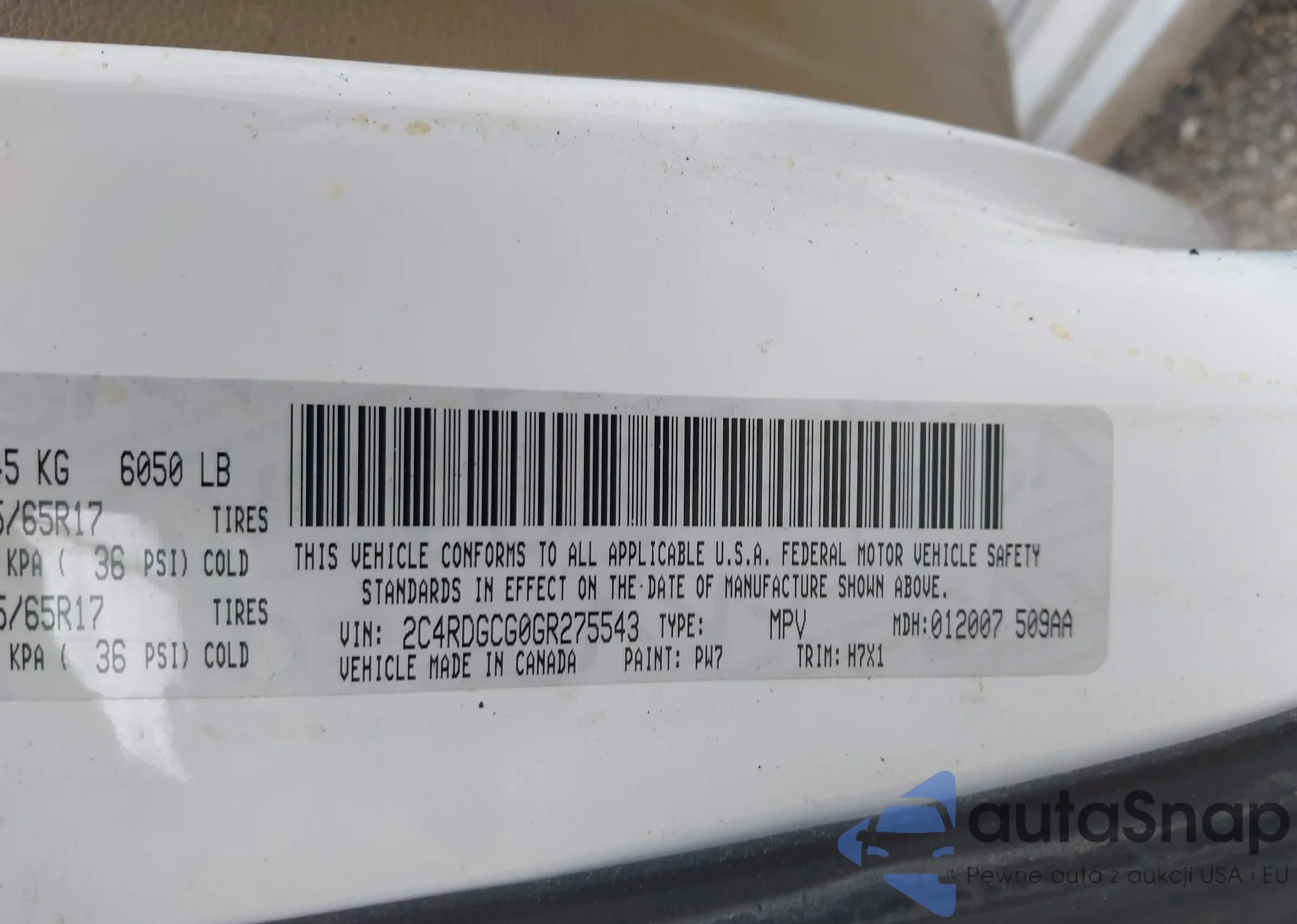 • VIN 2C4RDGCG0GR275543