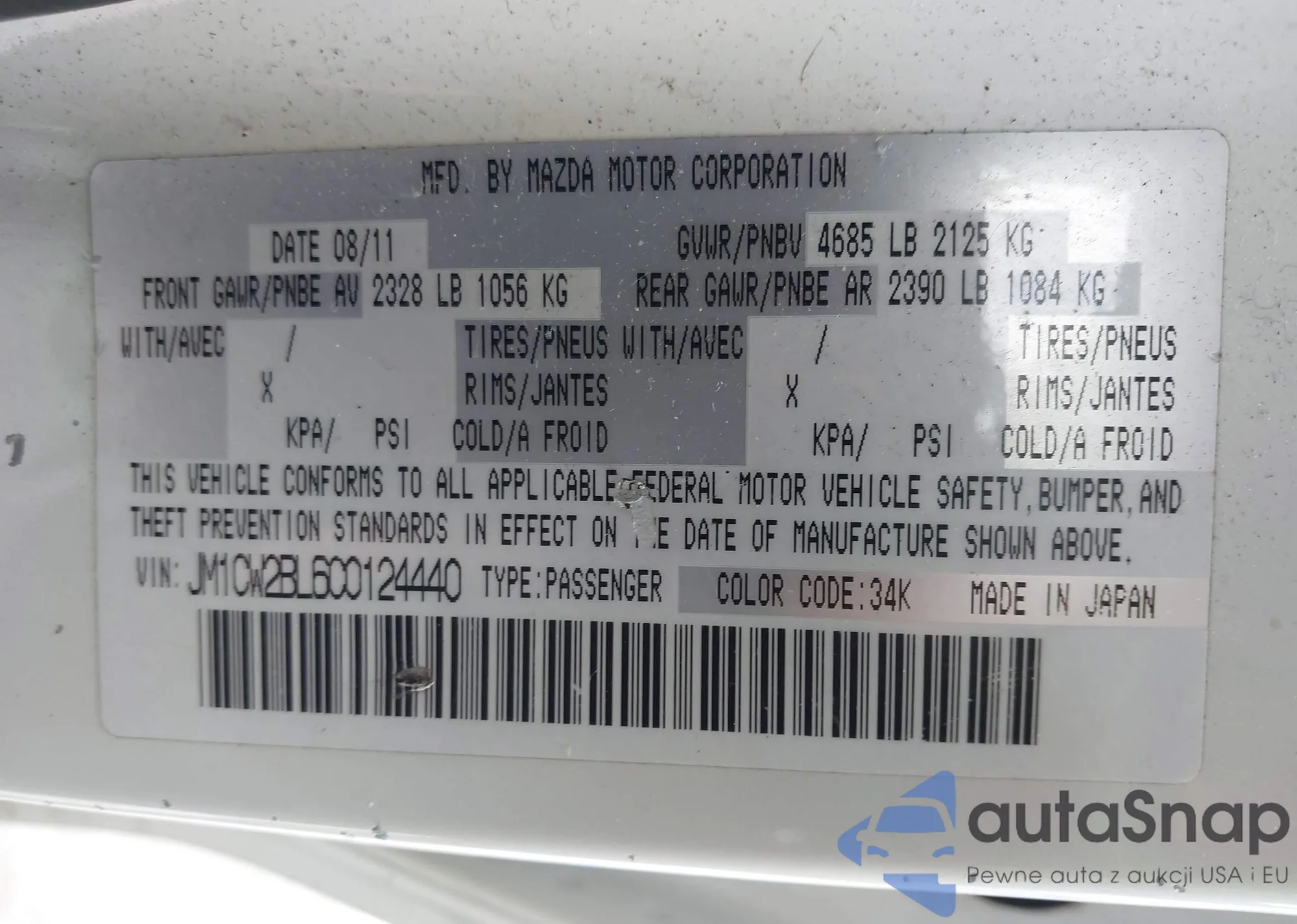 • VIN 3VVMB7AX0PM036876