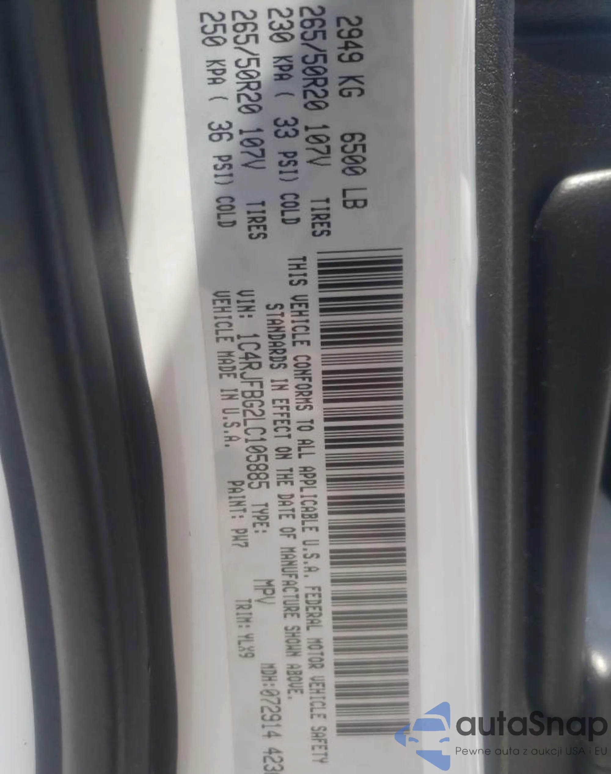 • VIN 1C4RJFBG2LC105885