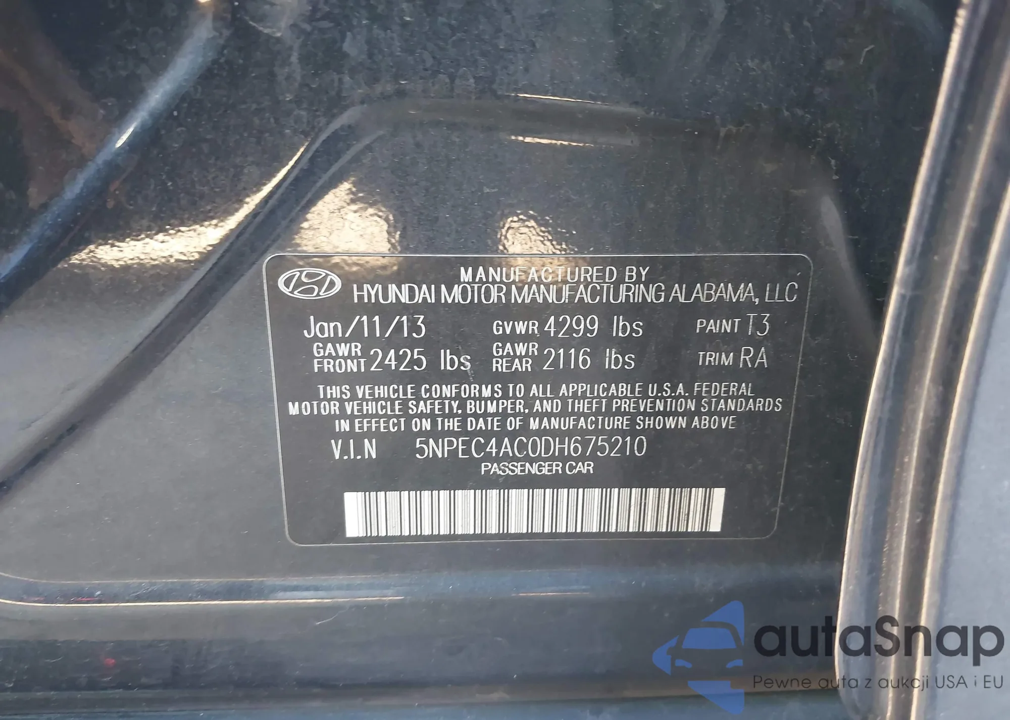 • VIN 5NPEC4AC0DH675210