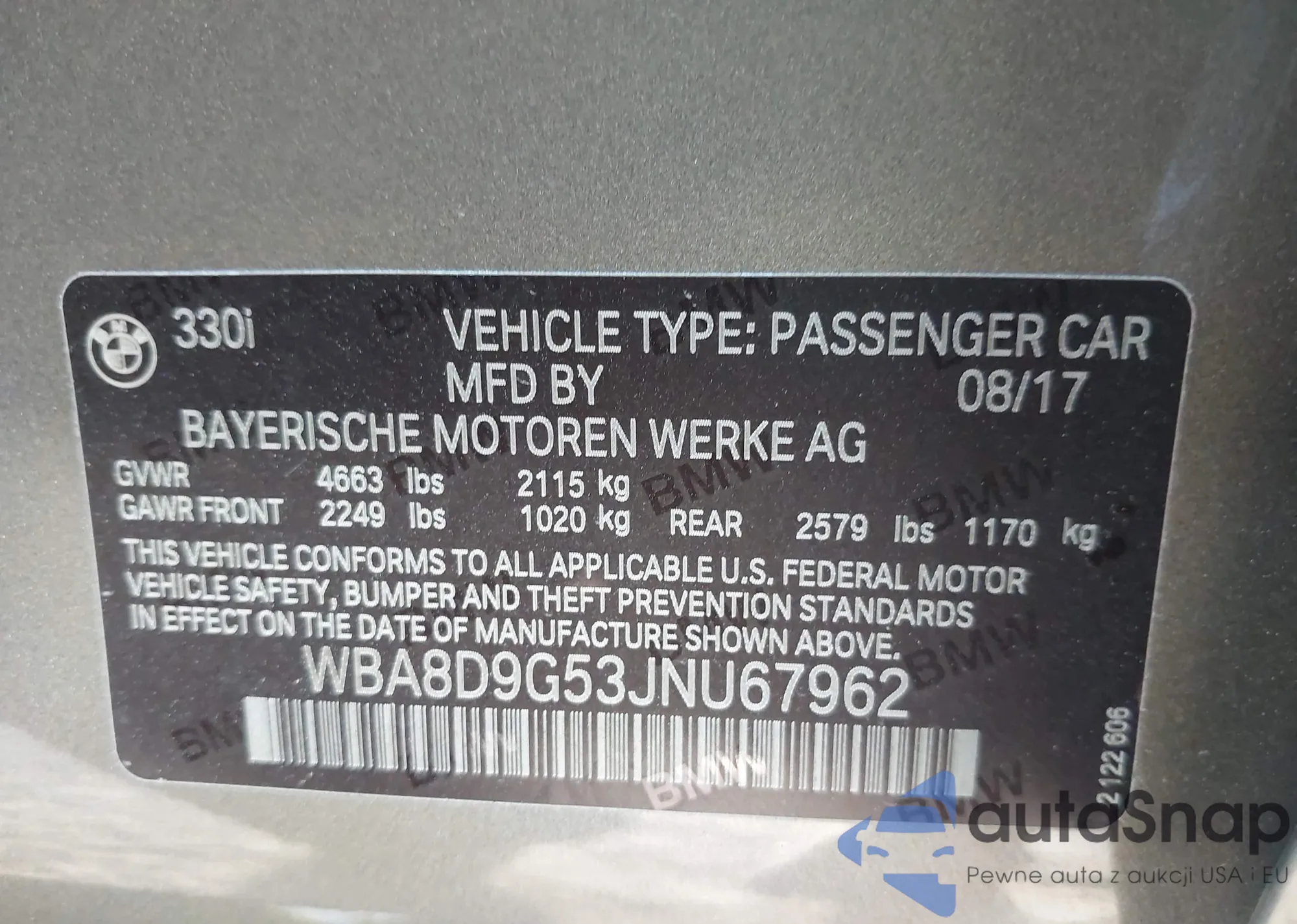 LOT: 41931342 VIN: WAUGGAFC3DN081065
