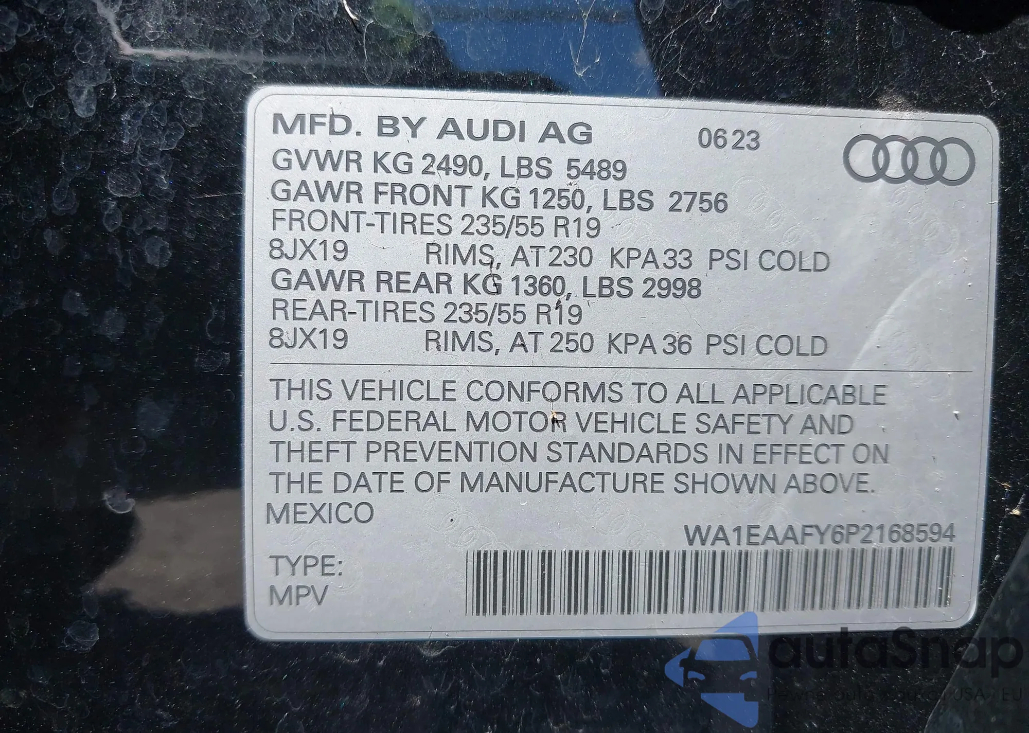 • VIN WAUGGAFC3DN081065
