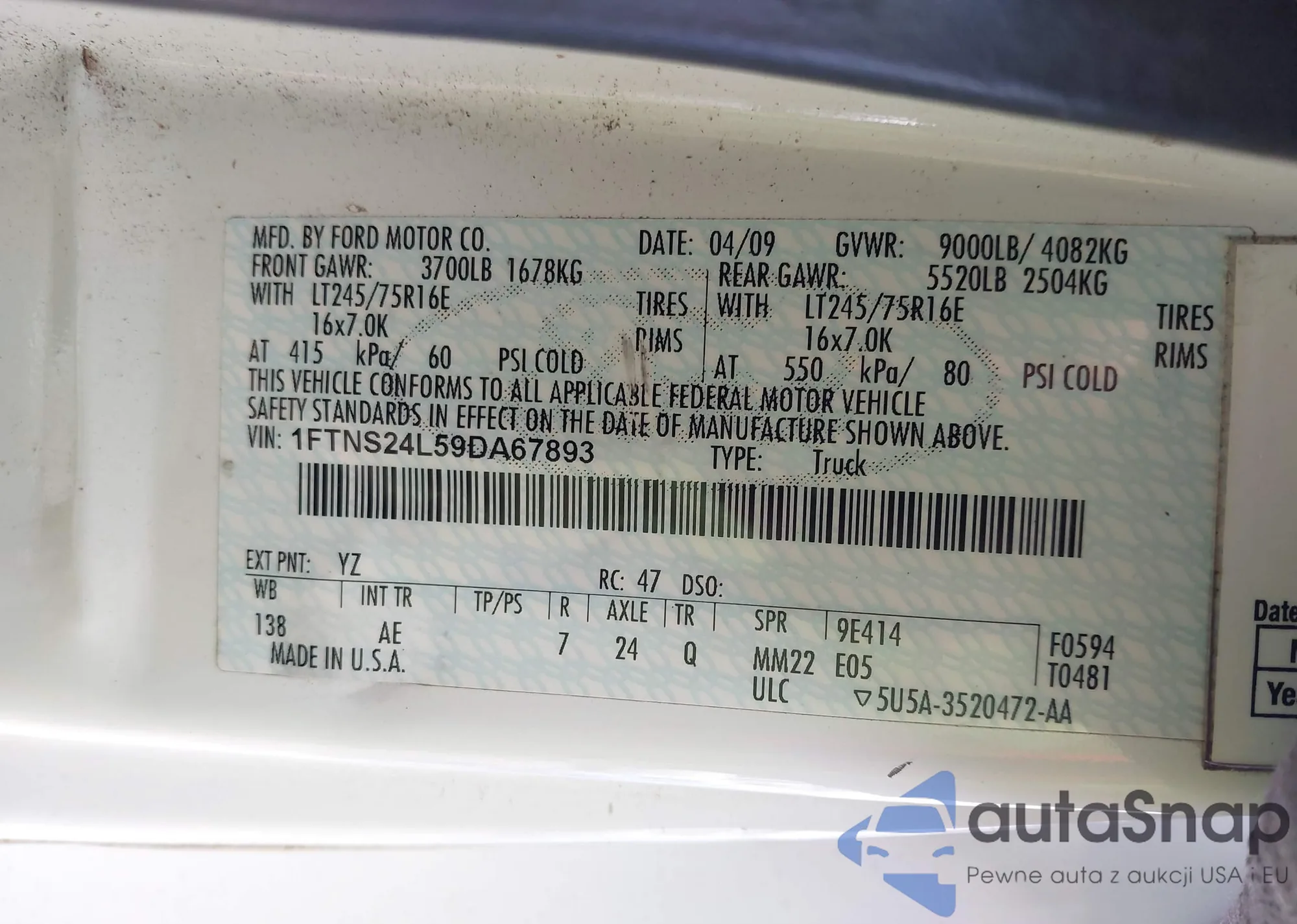 LOT: 41890311 VIN: 1FTNS24L59DA67893