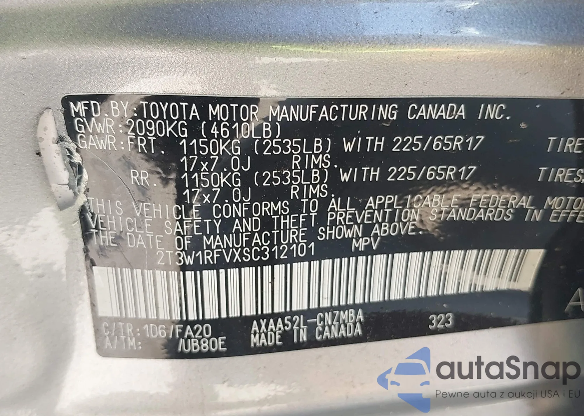 LOT: 41897536 VIN: 2T3W1RFVXSC312101