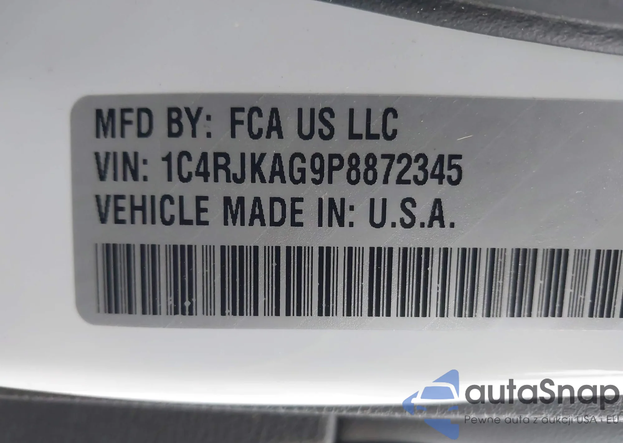 • VIN 1C4RJKAG9P8872345