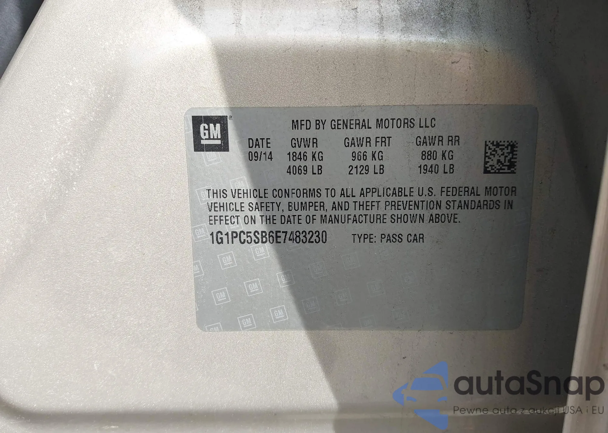 LOT: 42104082 VIN: 1G1PC5SB6E7483230