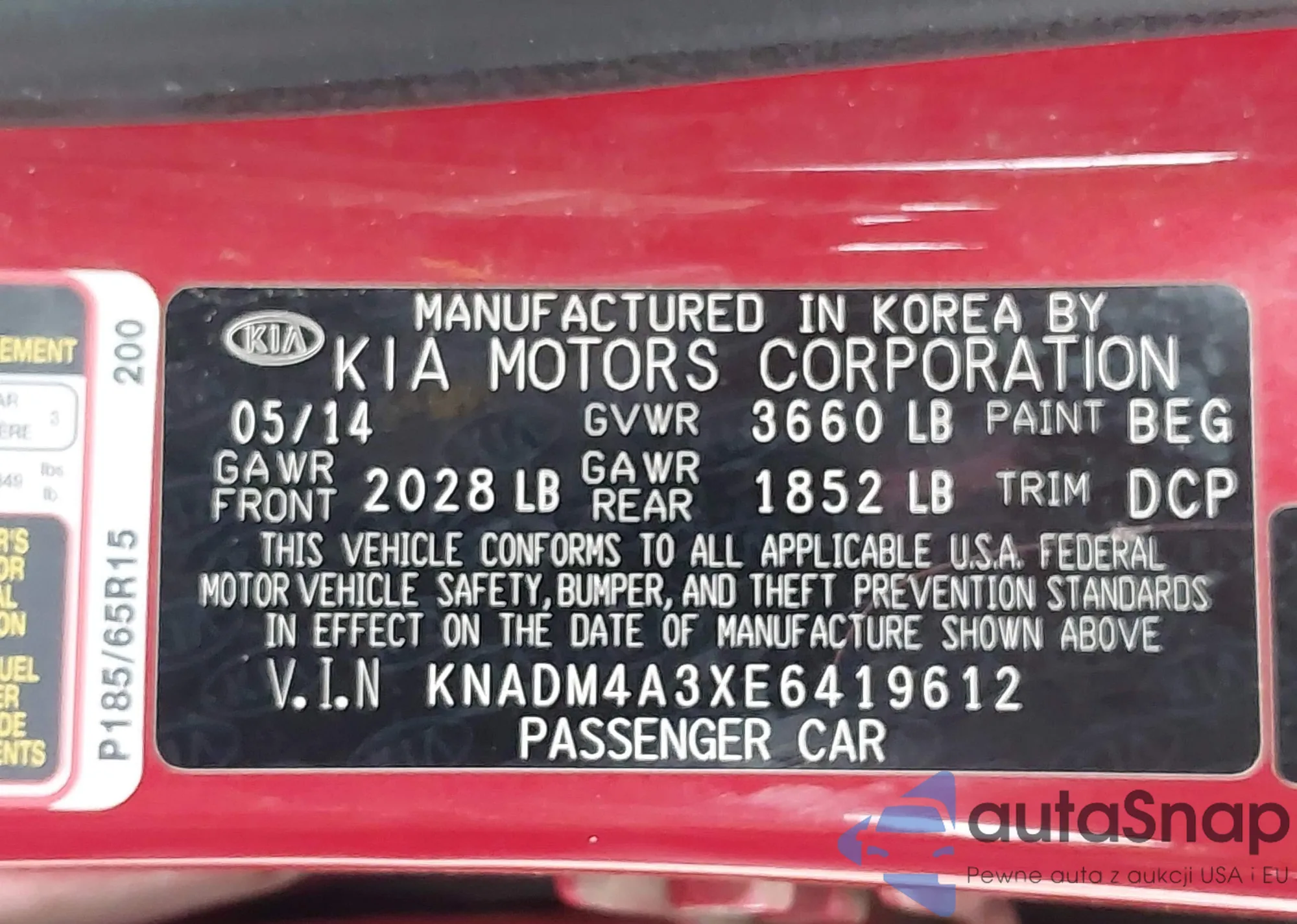LOT: 42188657 VIN: KNADM4A3XE6419612
