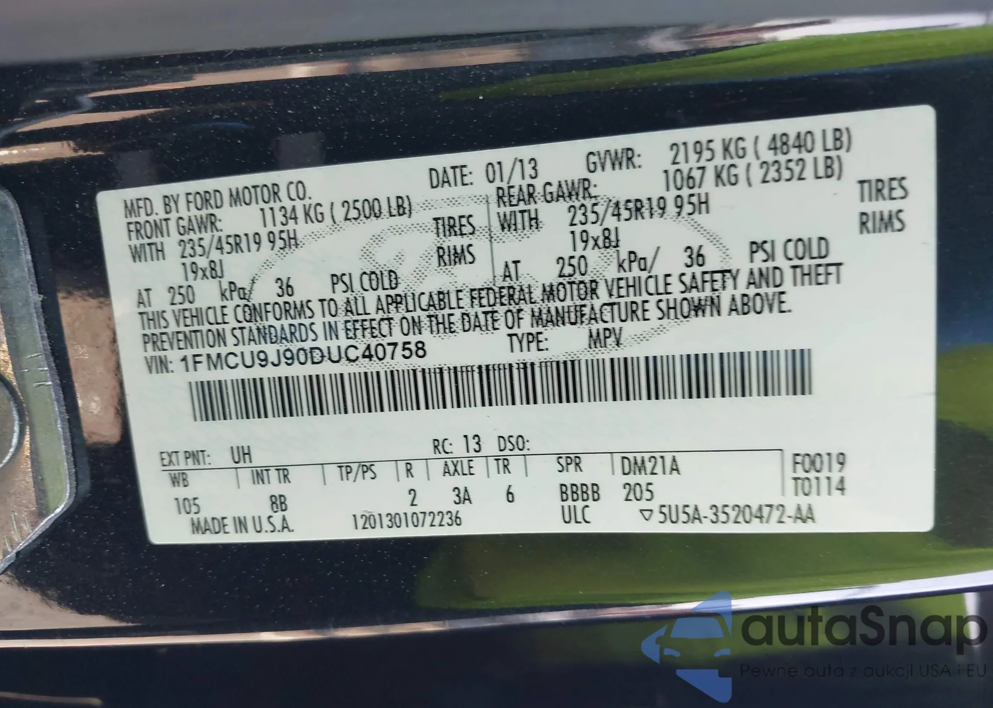 LOT: 42176495 VIN: KM8JU3ACXDU624112