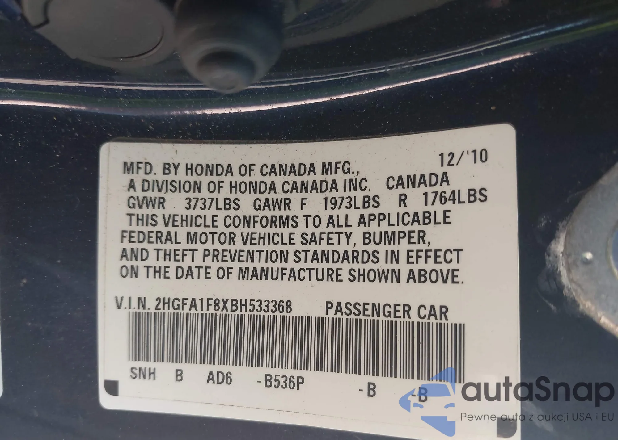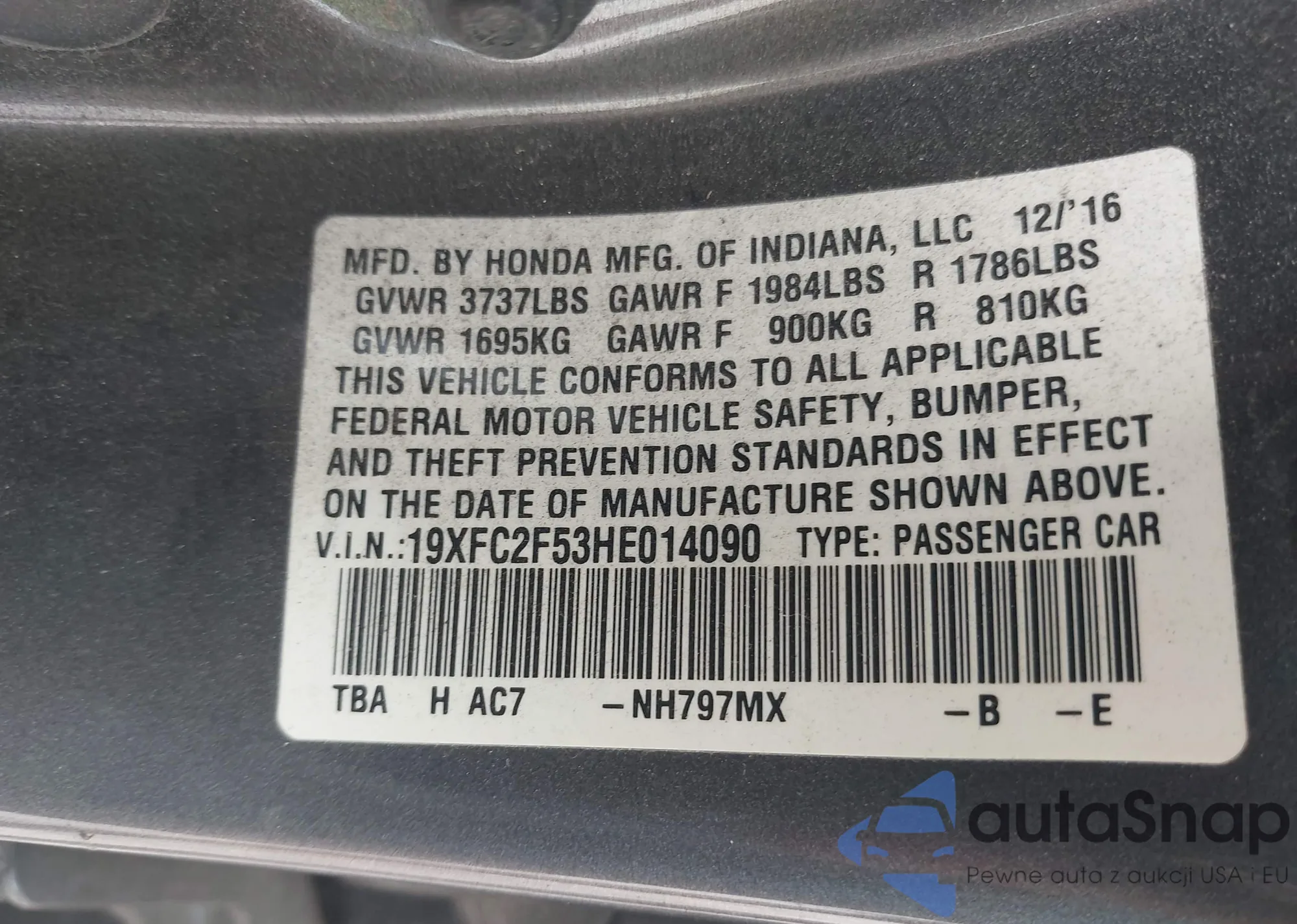 LOT: 42346366 VIN: 19XFC2F53HE014090