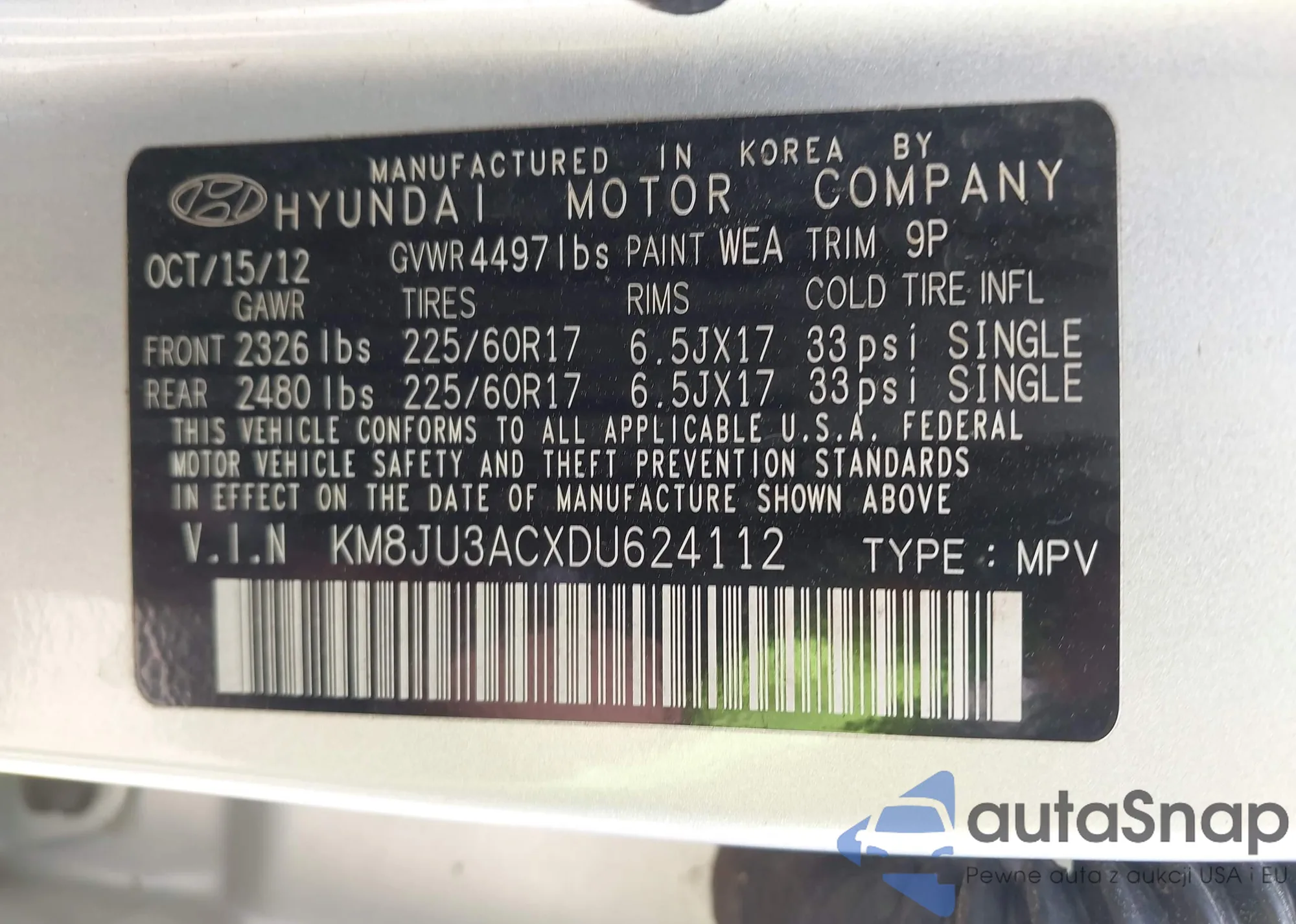 • VIN KM8JU3ACXDU624112