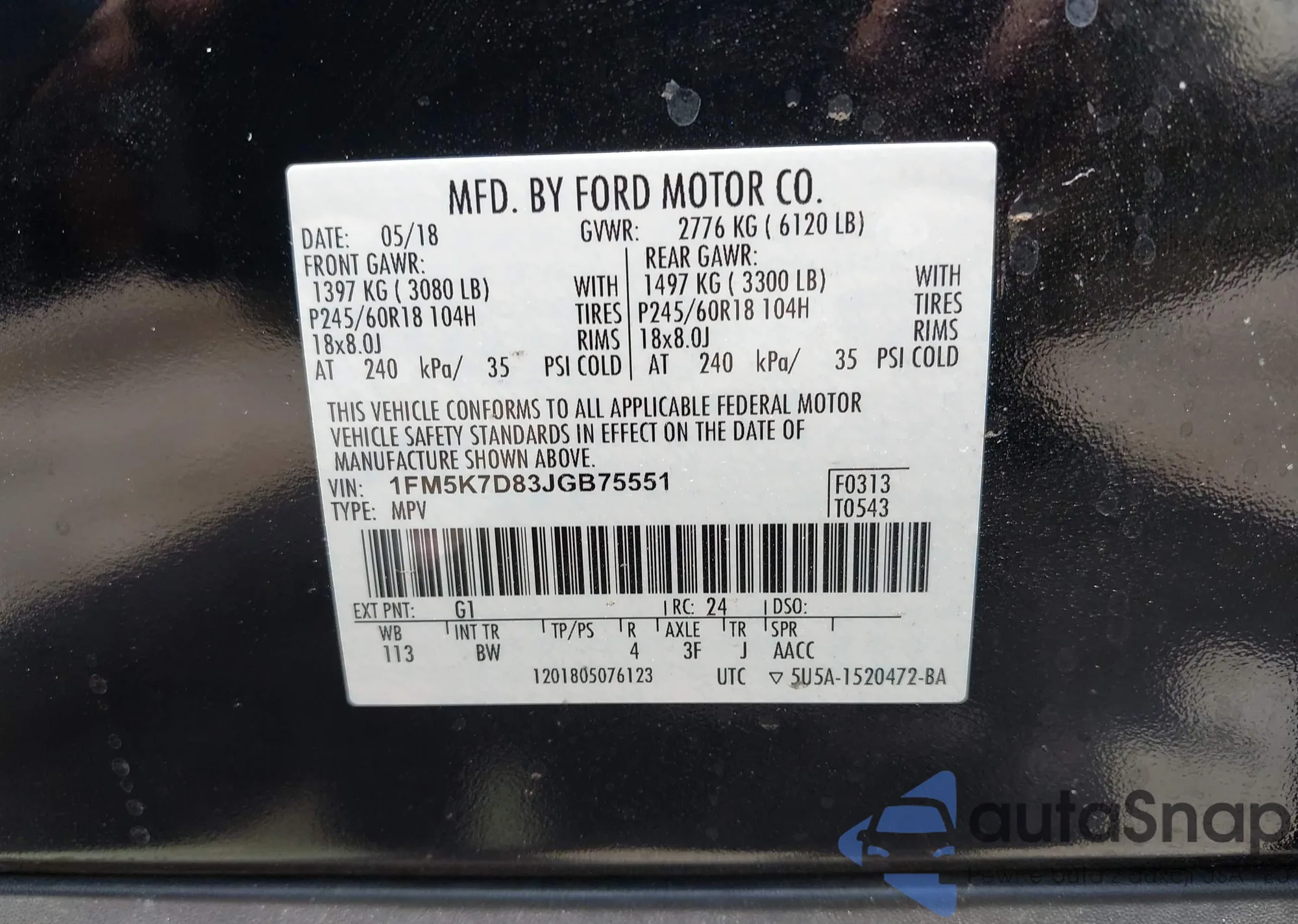• VIN 1FMCU9JX2GUA59065