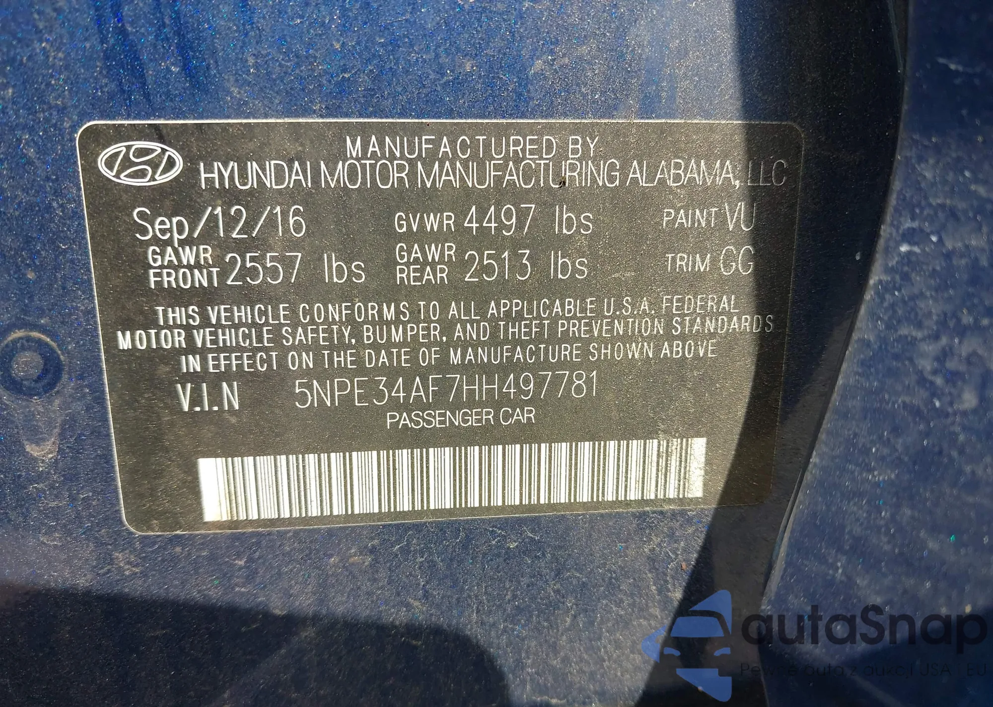 • VIN 5NPE34AF7HH497781