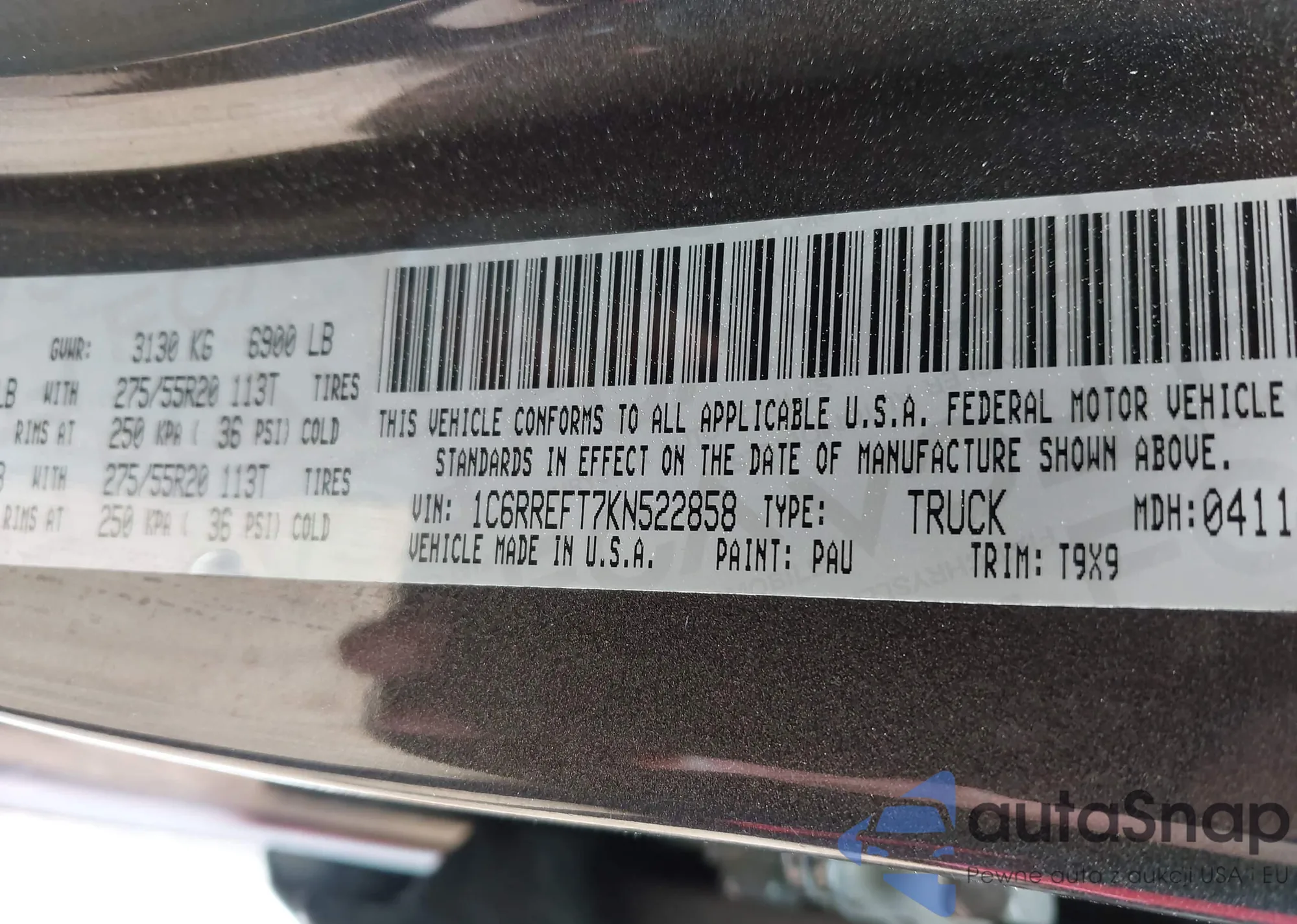 • VIN 1C6RREFT7KN522858