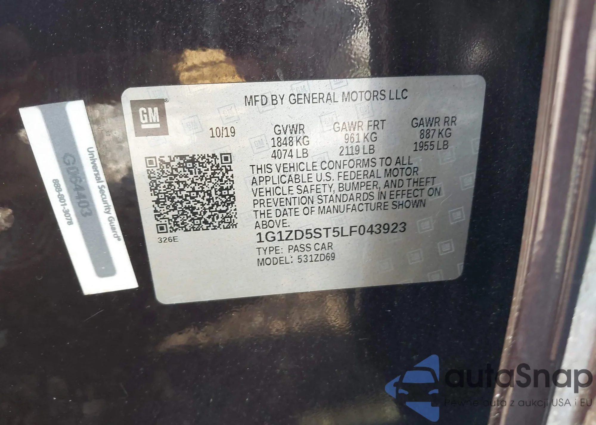 LOT: 42159905 VIN: 1G1ZD5ST5LF043923