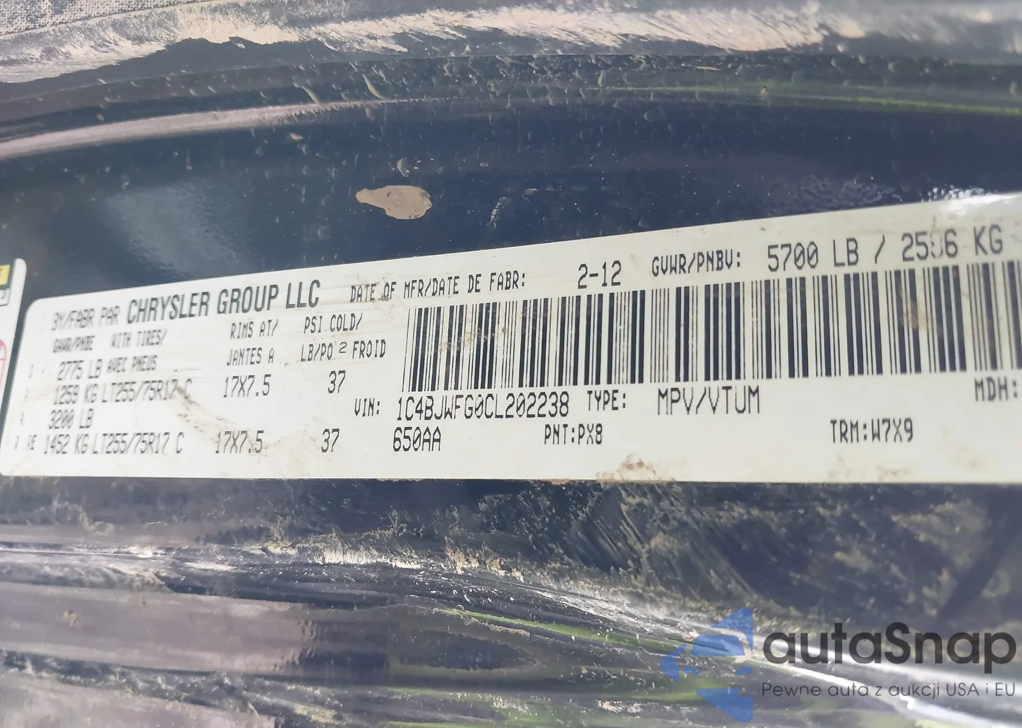 • VIN 1C4BJWFG0CL202238