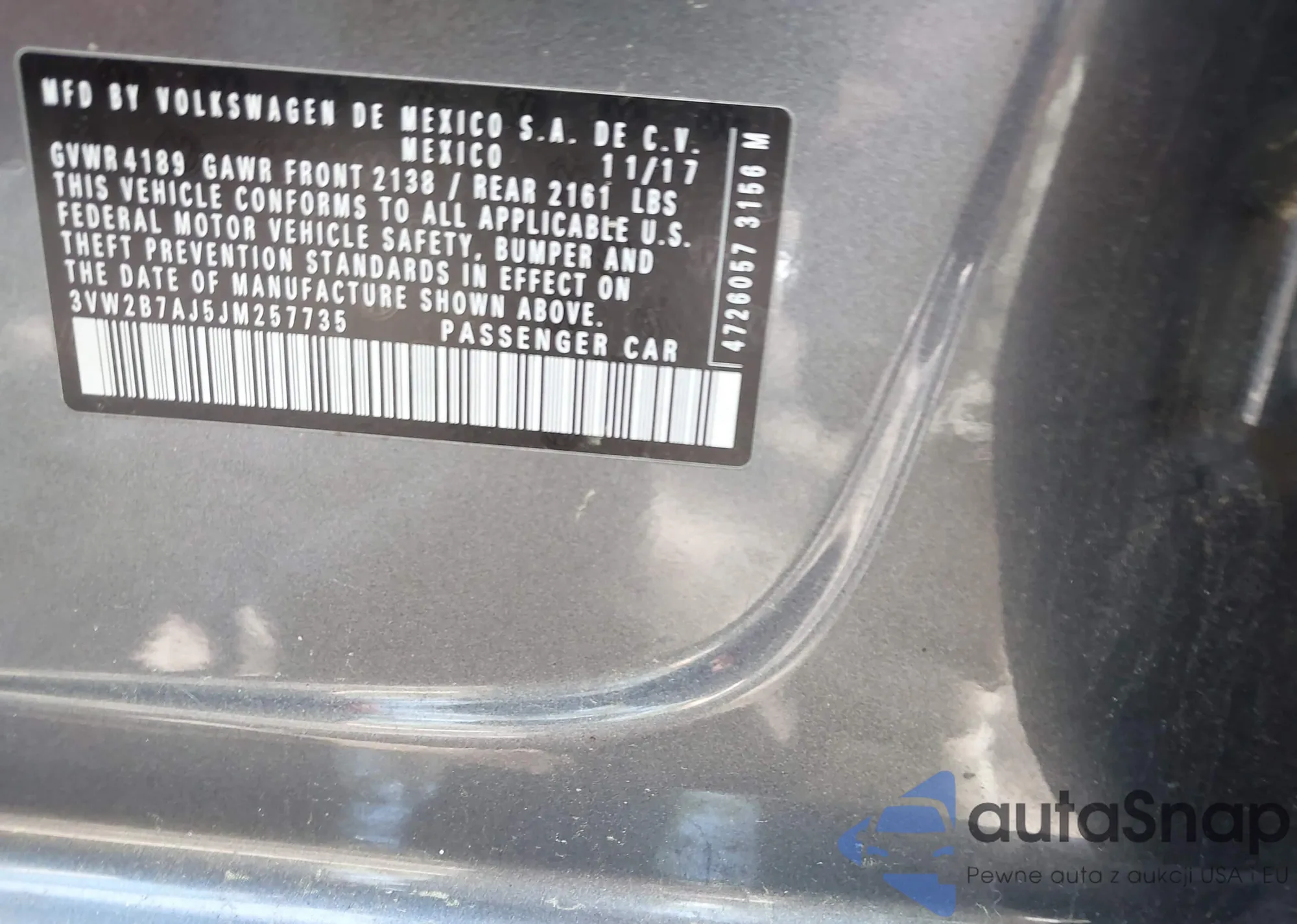 • VIN 3VW2B7AJ5JM257735