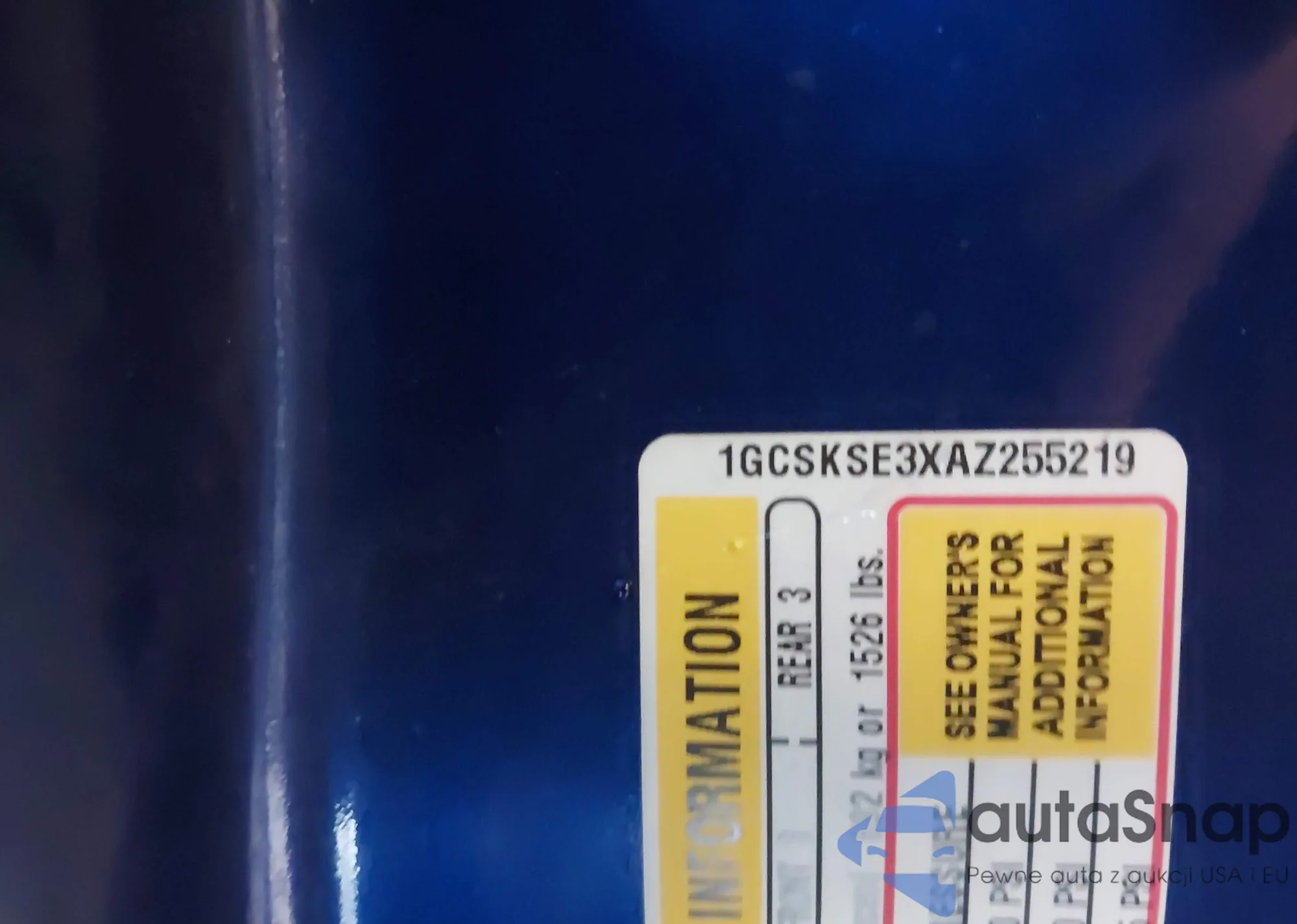 LOT: 42161766 VIN: 1GCSKSE3XAZ255219