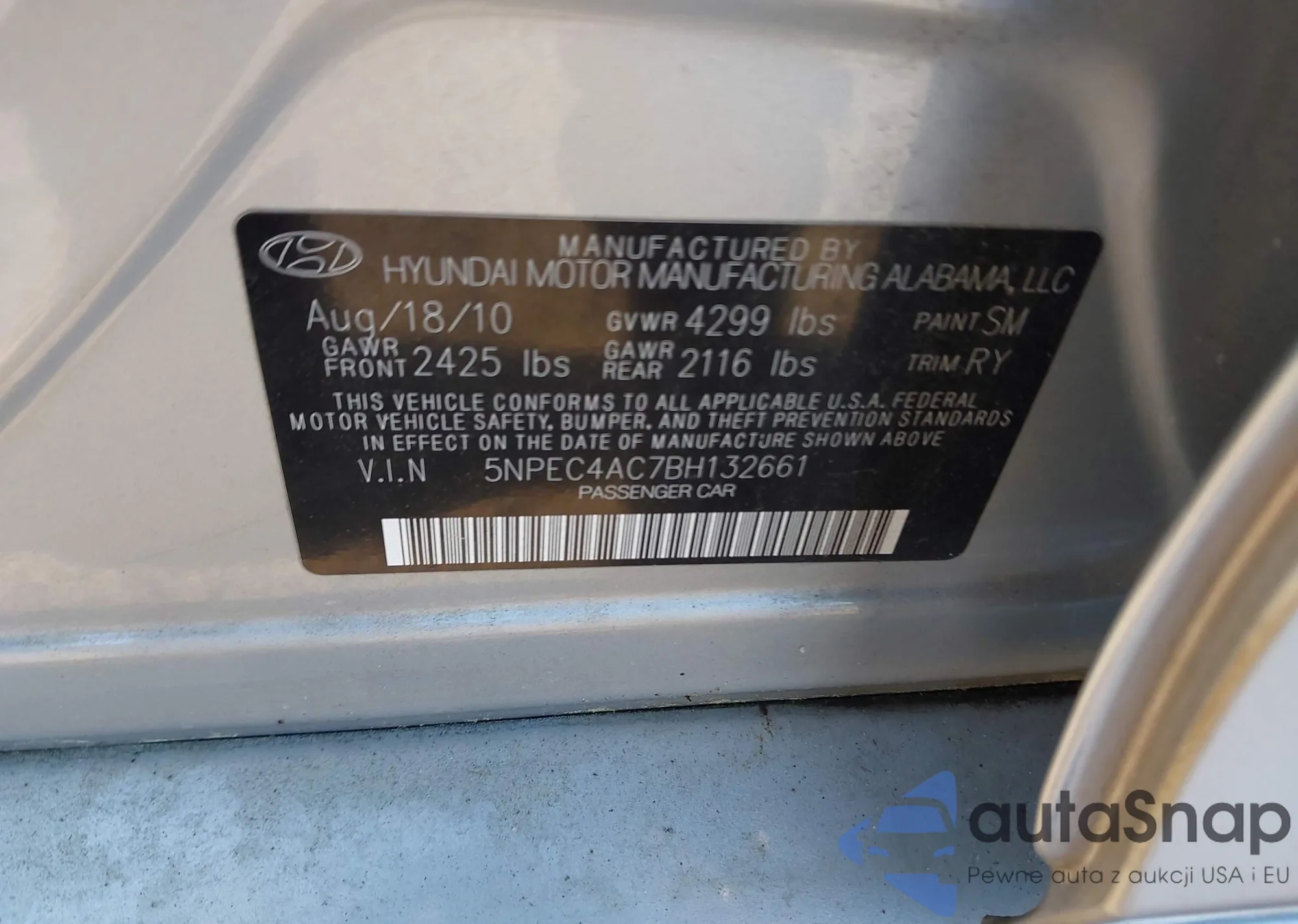 • VIN 5NPEC4AC7BH132661