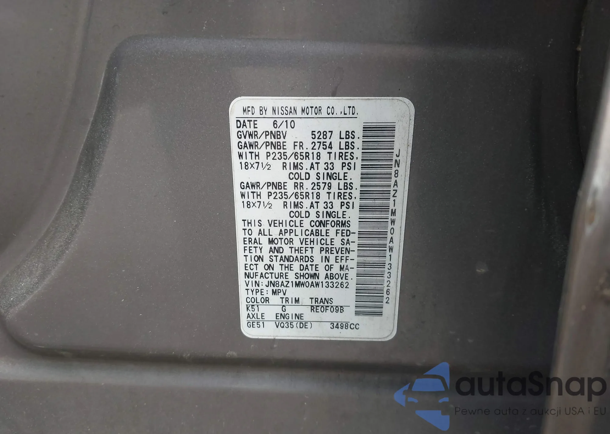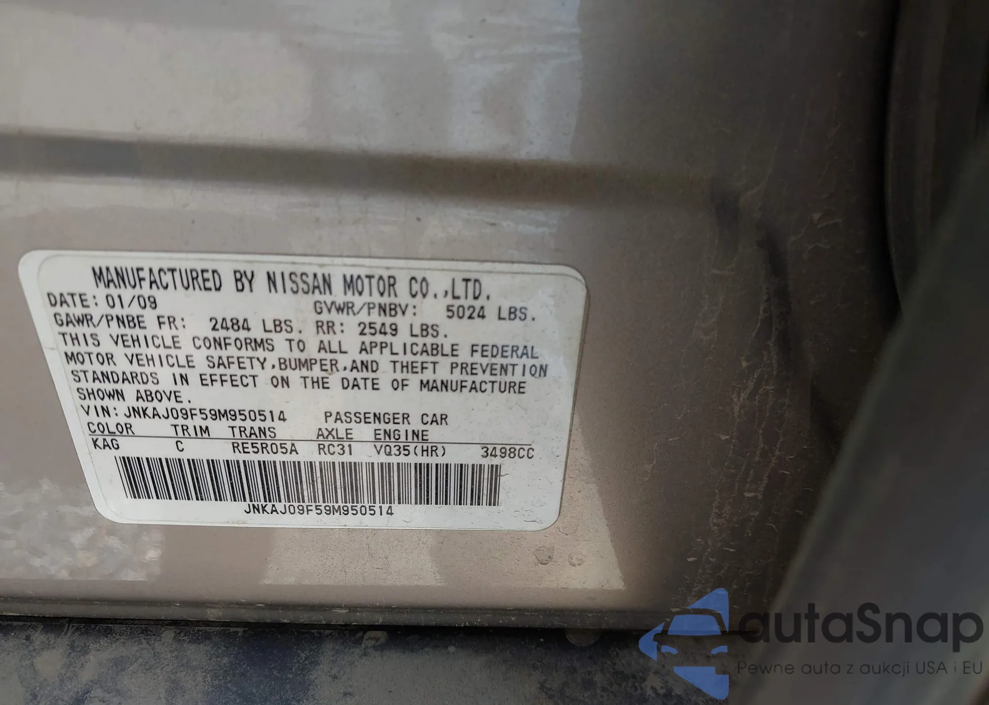 LOT: 42283301 VIN: JNKAJ09F59M950514