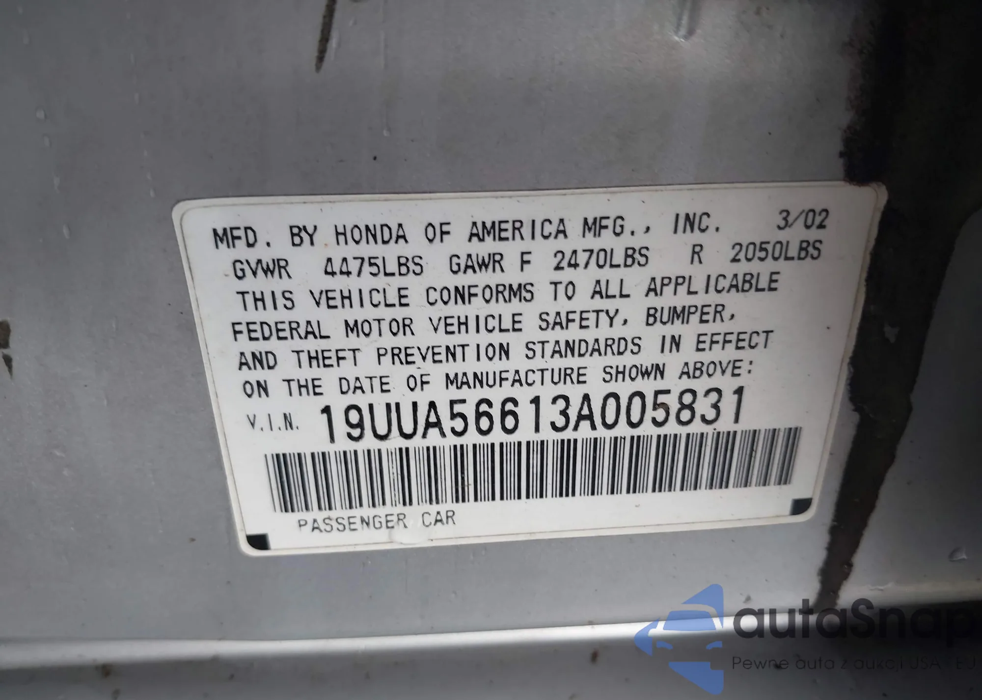 LOT: 41093824 VIN: 1HGFA16877L049085