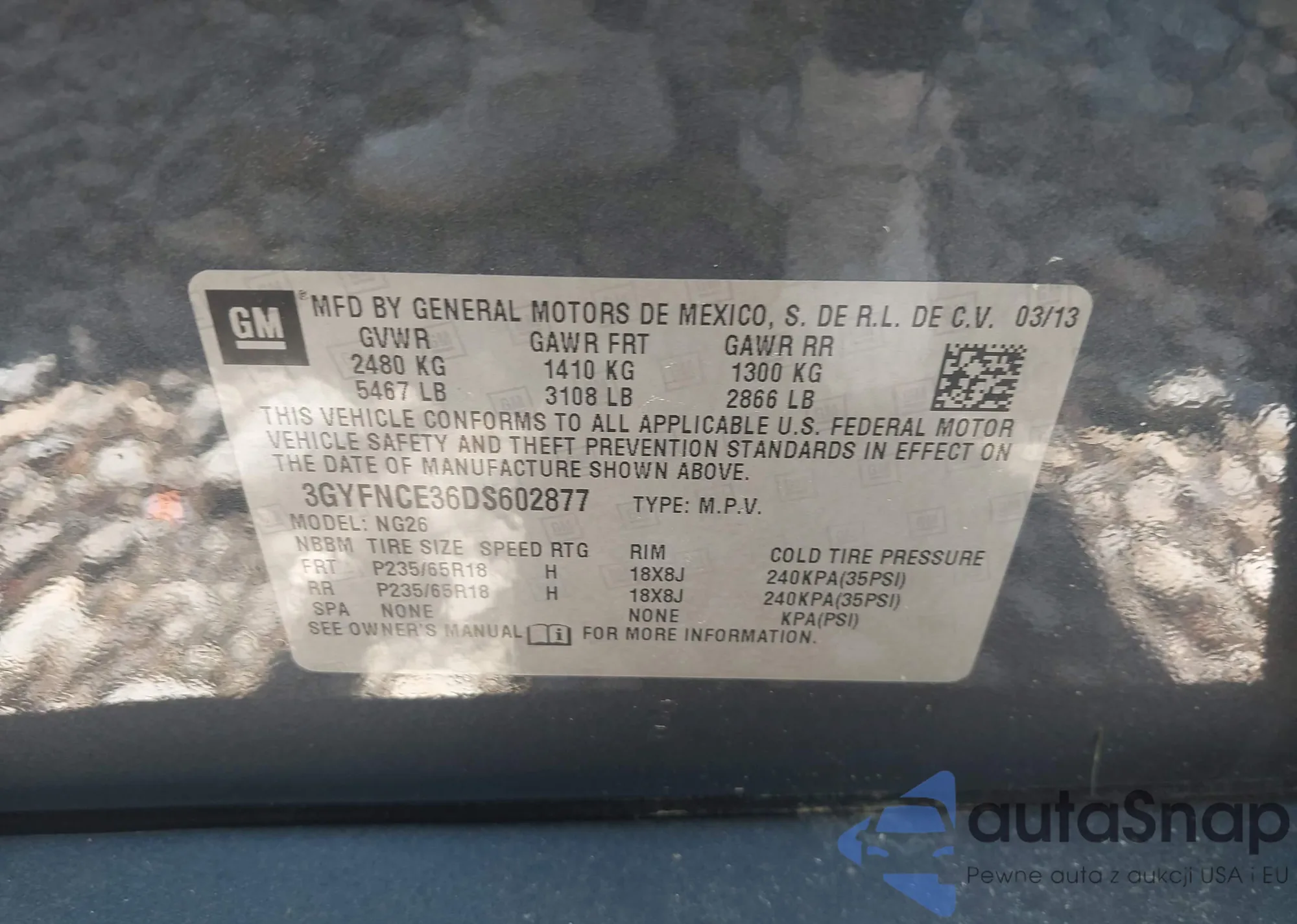 • VIN 3GYFNCE36DS602877