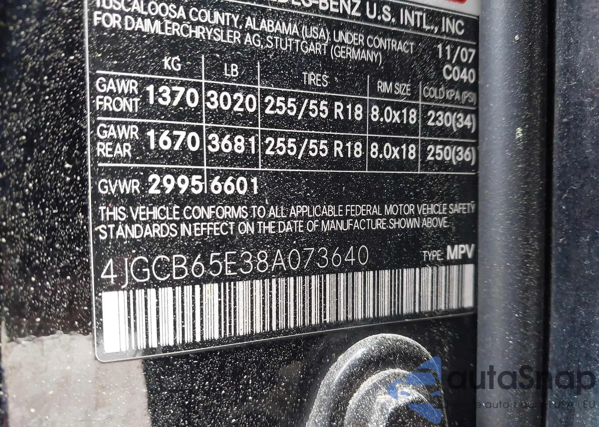 • VIN 4JGCB65E38A073640