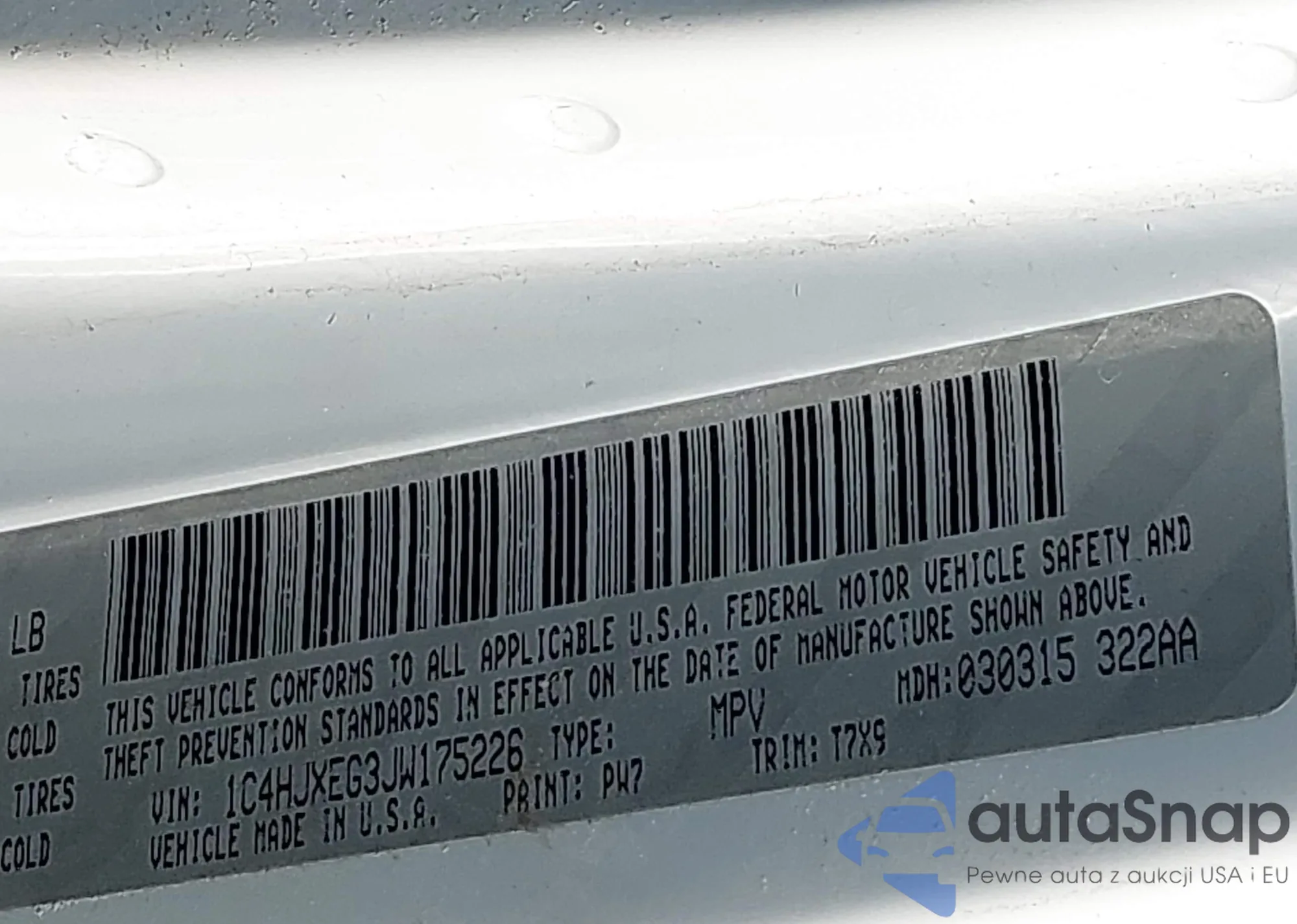 • VIN 1C4HJXEG3JW175226