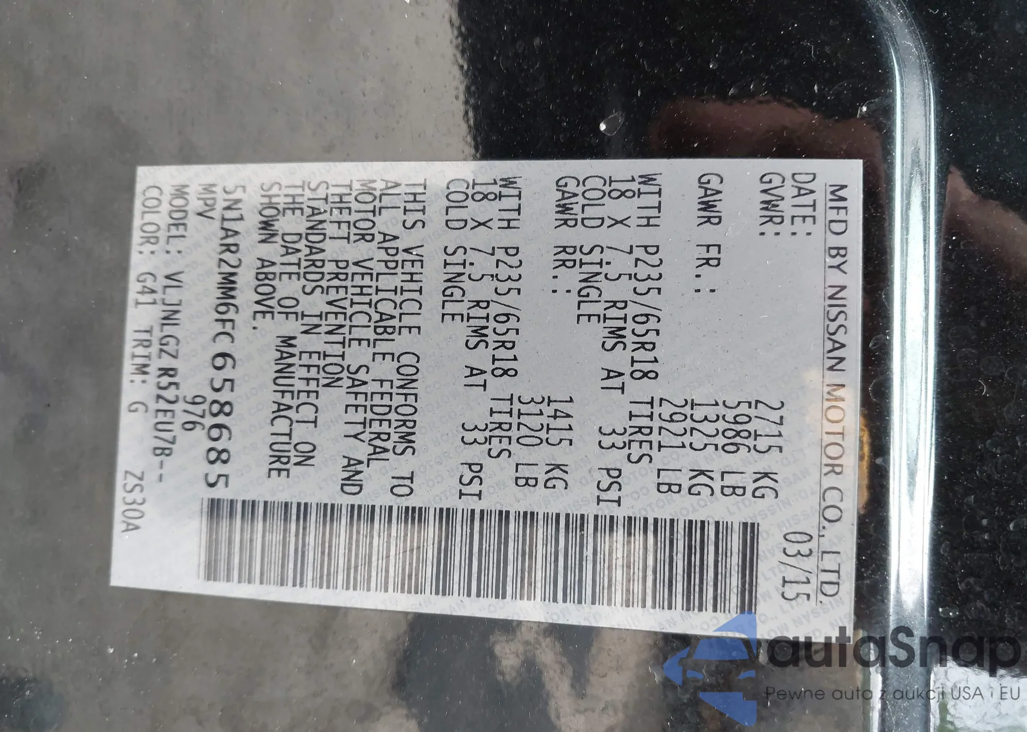 LOT: 42370179 VIN: 5N1AR2MM6FC658685