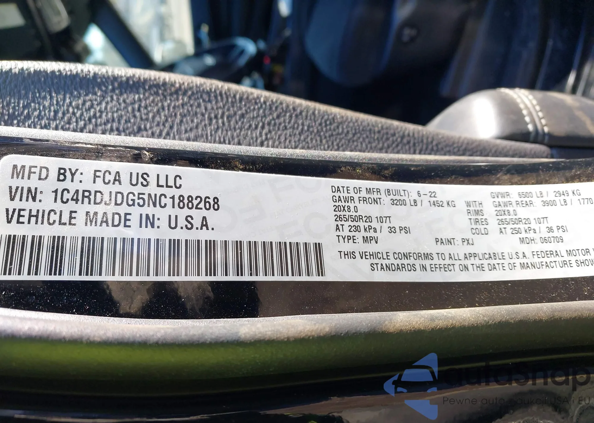 • VIN 1C4RDJDG5NC188268