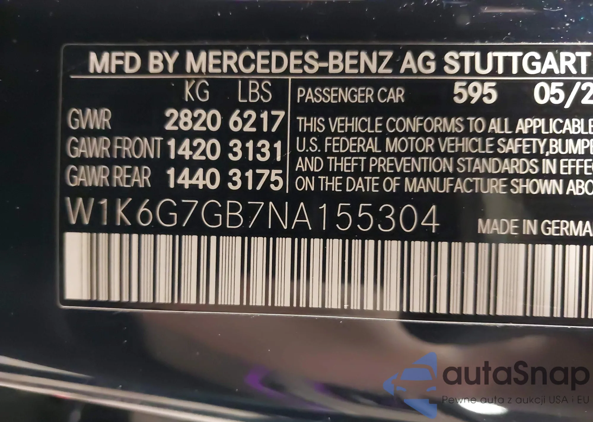 LOT: 41783600 VIN: W1K6G7GB7NA155304
