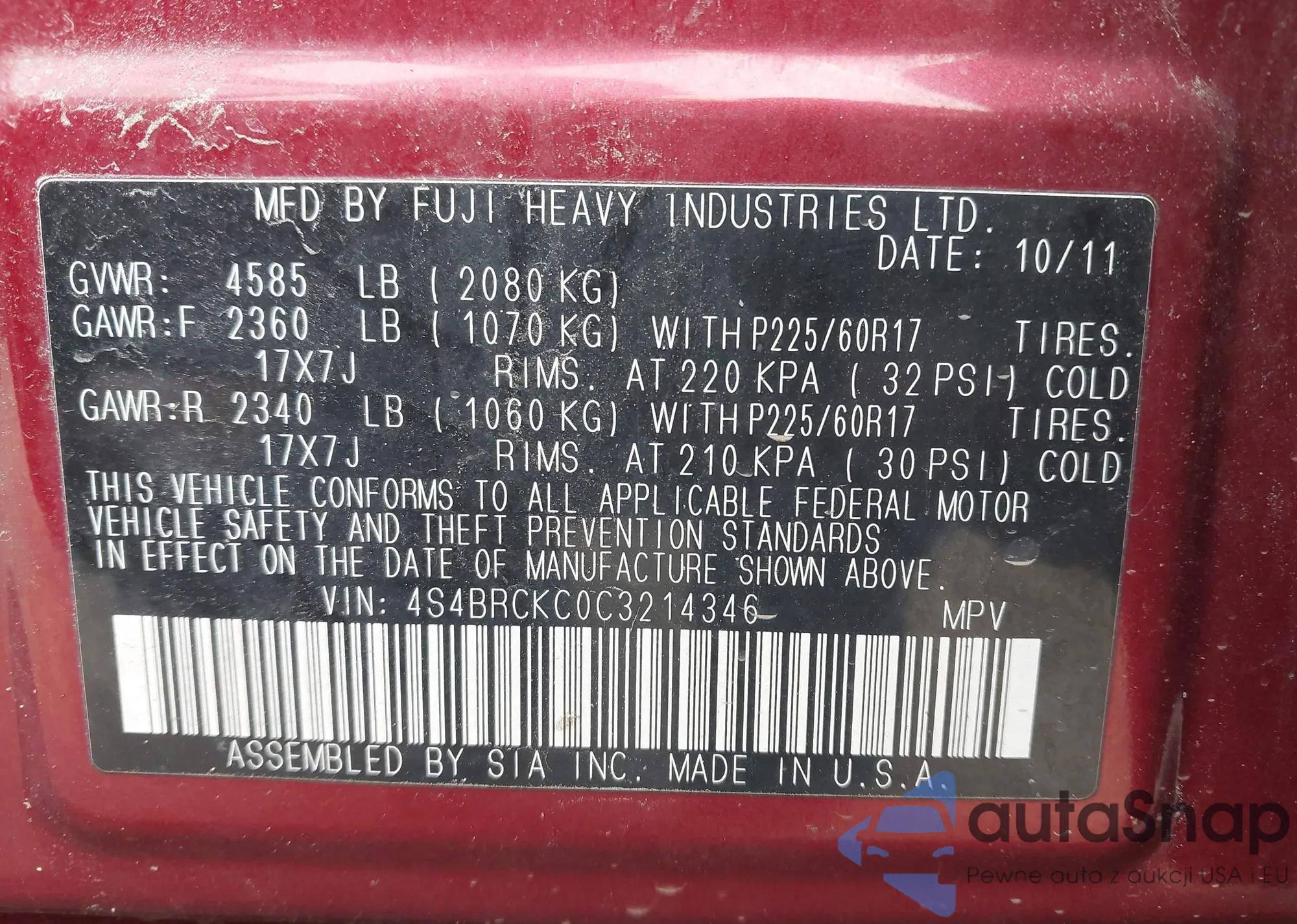 • VIN 4S4BRCKC0C3214346