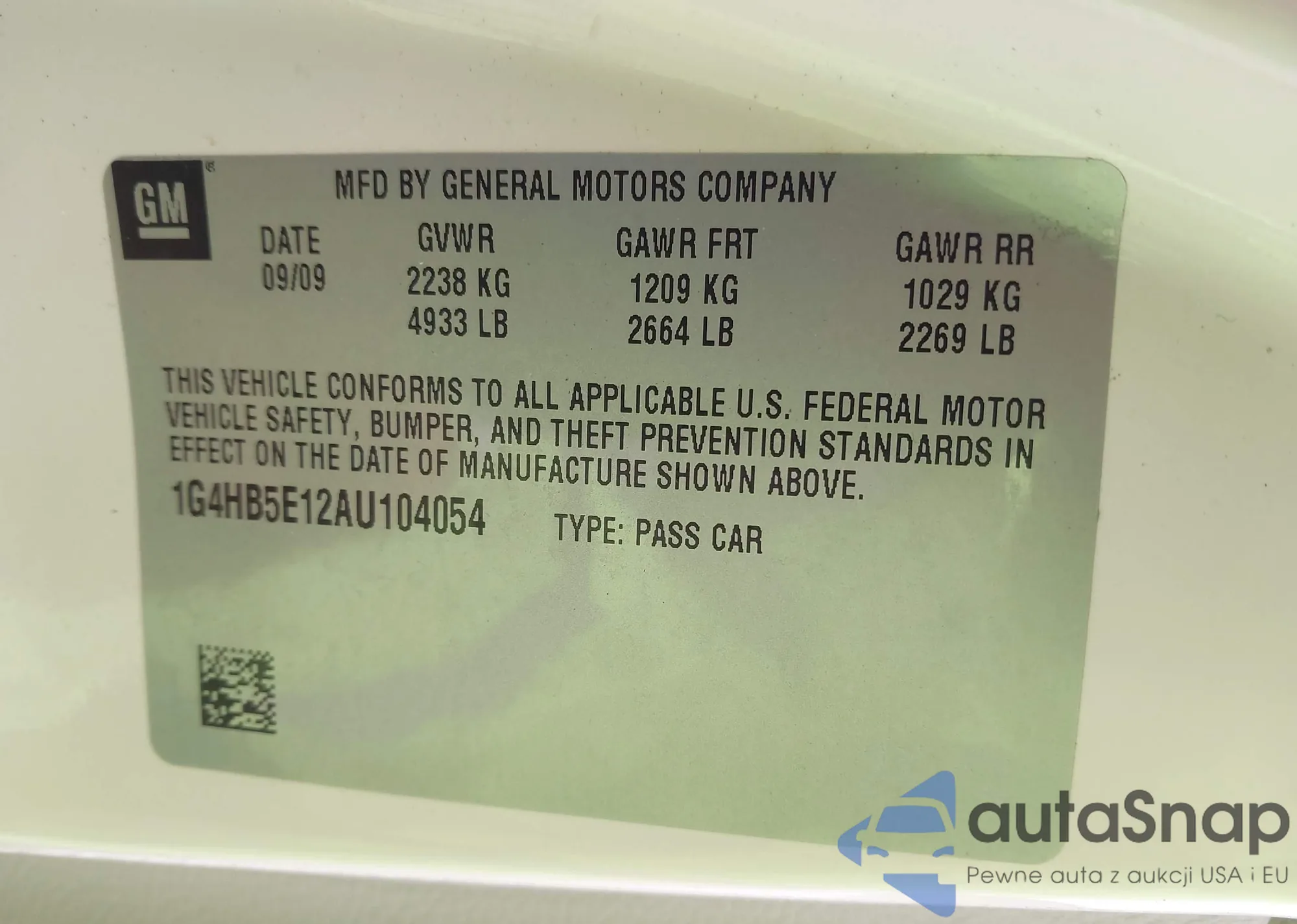 LOT: 42315429 VIN: JF1GJAA69GH018681